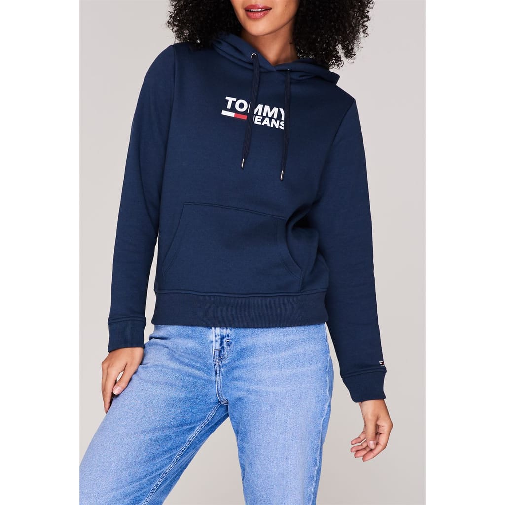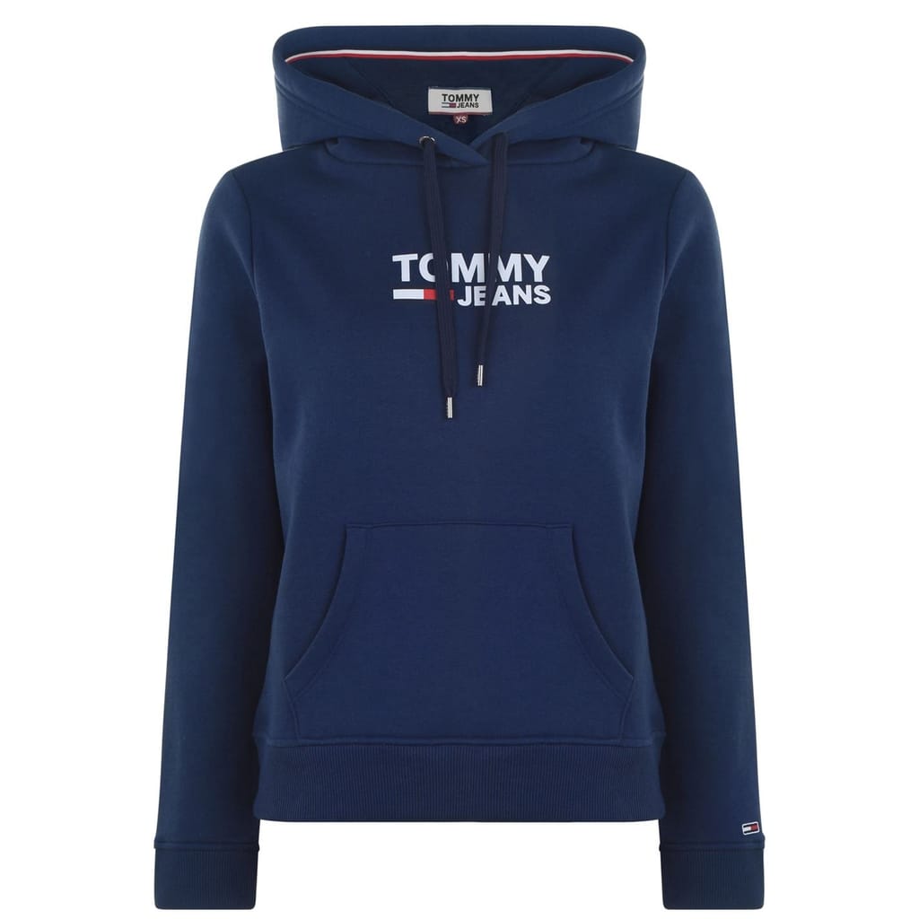 Update your everyday style with the Corp Logo Hoodie from Tommy Jeans. Crafted in a cotton mix, this hoodie features an over the head design, long sleeves, an adjustable drawstring hood, a pouch pocket and ribbed trims. The look is finished with the brand's logo printed to the chest with an embroidered logo to the sleeve for an instant sports vibe and high end completion.