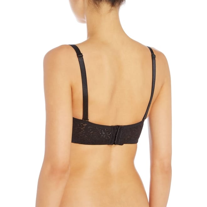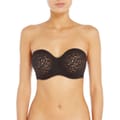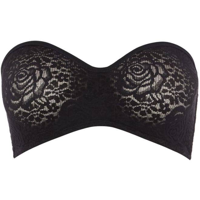 Floral lace strapless bra with shirring at centre gore which gives added definition and separation. Fully supported with the Stay4Sure gripper elastic that runs along the perimeters of the bra so you can feel confident the garment will not move in wear. It comes with fully adjustable, detachable straps allow this bra to be worn over the shoulders or cross back. Elastic along top of bra has intermittent slots for strap hooks, giving a wide variety of positions and configurations