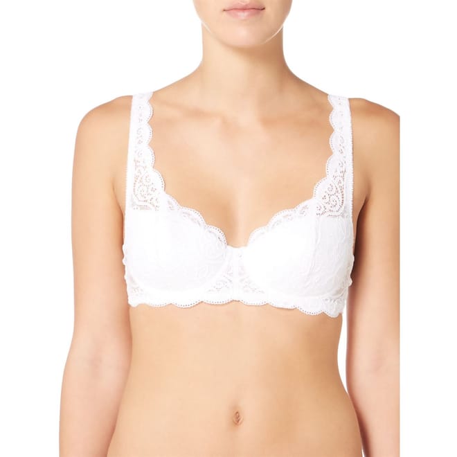 Update your lingerie collection with this Amourette 300 Underwired Half Cup Bra from Triumph. Crafted with a soft and stretchable composition, this bra features a sturdy underwire with foam padding in a full cup size. The straps are adjustable and there is elegant floral lace detailing throughout to complete this piece. You cannot miss out on this one.