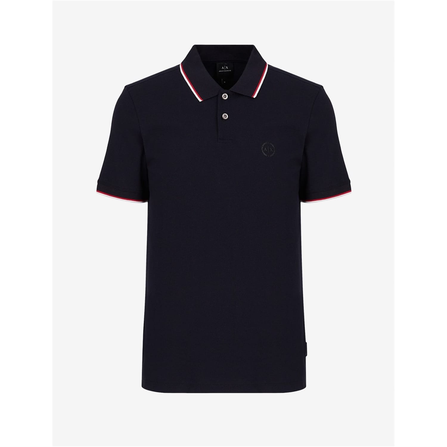 Update your smart-casual attire with this Tipped Pique Polo Shirt brought to you by Armani Exchange. Crafted in a soft pure cotton fabrication, this timeless silhouette features a polo neck, two button placket, short sleeves, a straight hem and ribbed trims to the neck and sleeve for comfort. Decorated in a solid colour-way throughout, the design is elevated with contrasting piques to the ribbed trims and is finished with the signature Armani Exchange logo to the chest for instant brand recognition. Fabrication: 100% cotton. Care: Machine washable at 30 degrees. -
