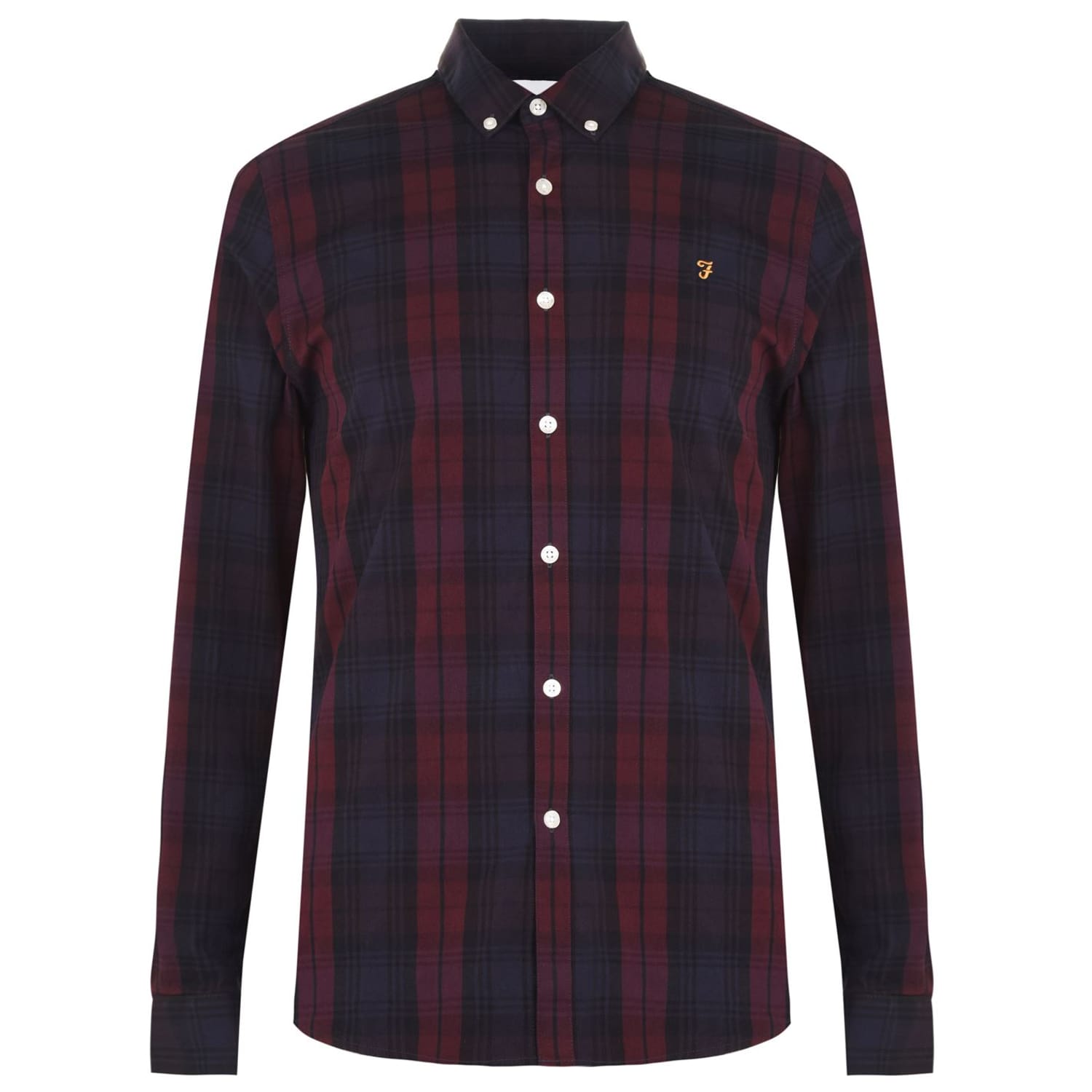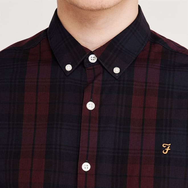 A checked shirt by Farah to give that all important smart casual look that's neither trying too hard to impress but at the same time isn't sloppy. Comes featuring a button down collar, a checked tartan colour scheme throught and the signature Farah accent embroidered into the left hand chest for instant brand appreciation. Style this shirt with jeans and trainers for a dressed down look or smarten it up with tailored trousers and brogues. Made from 100% Cotton. -