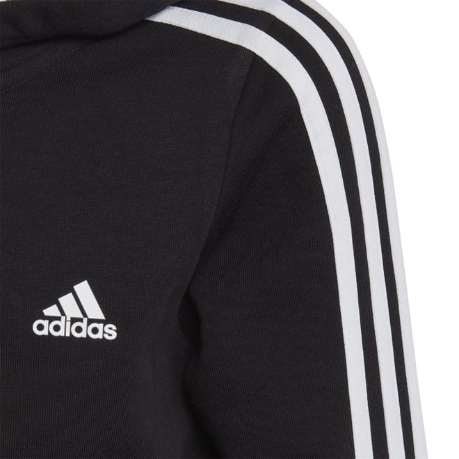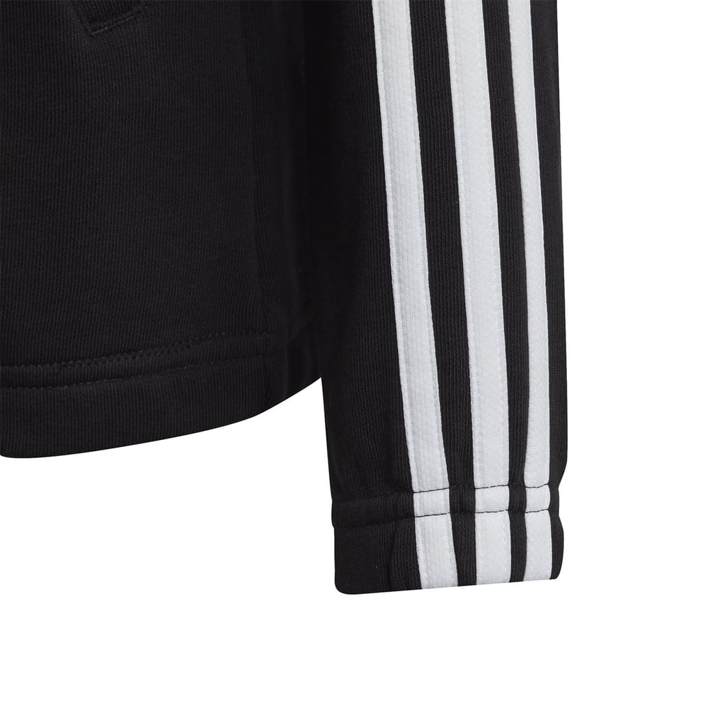 Update your little ones wardrobe with this adidas 3 Stripe Zip Hoodie. Constructed with a classic zip down closure, this piece features a hood, two front pockets and ribbed trims for a comfortable fit. Complete with adidas branding to the cheat and the signature 3 stripe design.