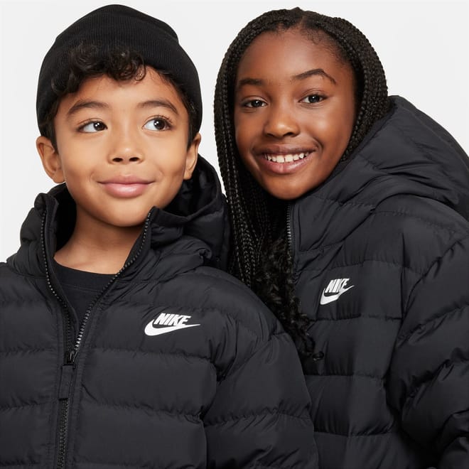 This unisex Nike NSW Filled Jacket is crafted with full zip fastening and long sleeves for a classic look. It features a hood and is a 2 pocket style. This jacket is a padded construction designed with a signature logo and is complete with Nike Swoosh branding. You do not want to miss out on this one.