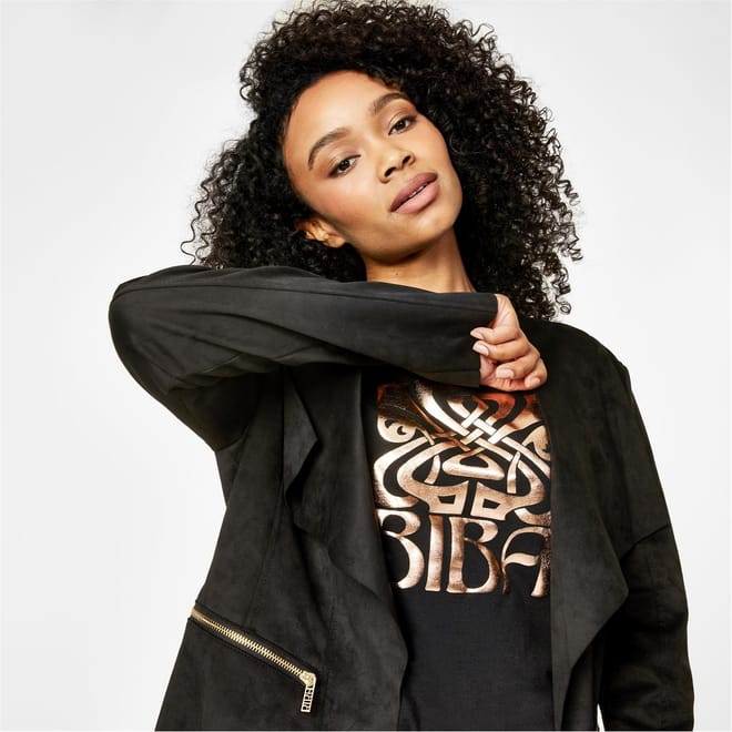 Crafted from premium suedette fabric for a fashionably luxe feel, the perfect throw-on waterfall zip detail jacket for any occasion. A relaxed silhouette with an open front, finished with Biba branded hardware. This waterfall layer is the perfect staple for every wardrobe, elevate your day with Biba today.