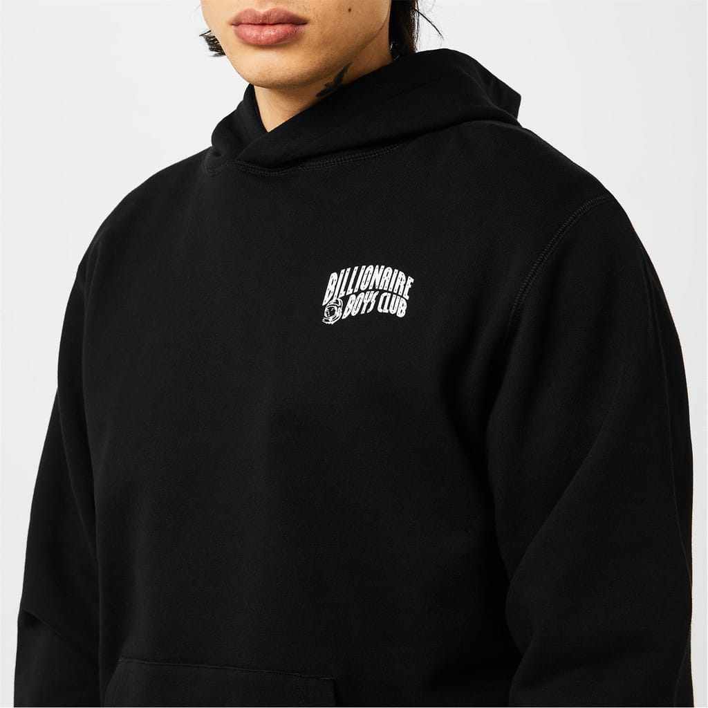 Upgrade your casual ensemble with this Small Arch Logo OTH Hoodie from Billionaire Boys Club. Constructed with a brushed-fleece lining for a comfortable fit, this hoodie is constructed in an over the head design and features long sleeves, a fixed hooded neckline, a kangaroo pocket and ribbed trims throughout for a snug fit. The Billionaire Boys Club arch logo is also printed to the left side of chest, the standing astronaut to the rear neck and the logo embroidered to the sleeve completes the look with a designer finish. Machine washable at 30 degrees.