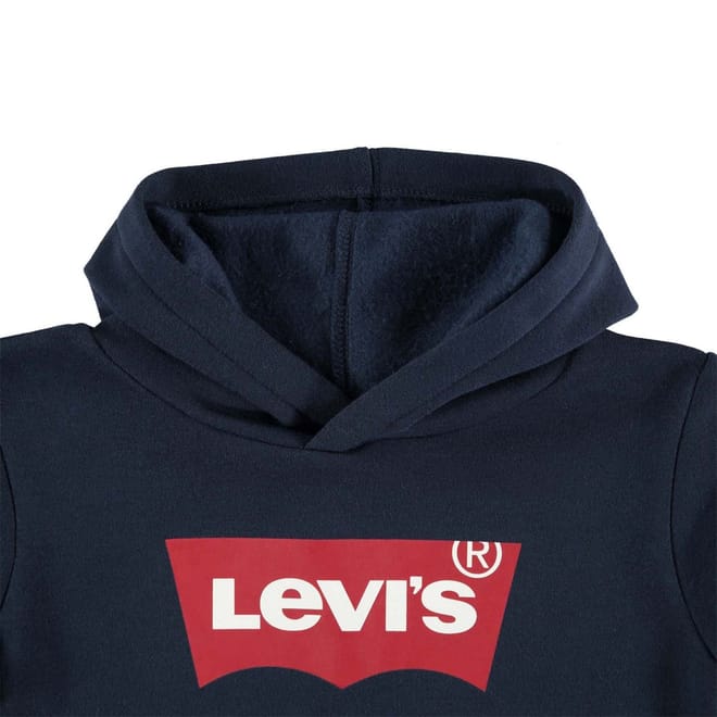 Refresh your young one's collection with this Children's Batwing OTH Hoodie from Levis. Crafted in a pure cotton composition, this hoodie is constructed in a pullover style and features a hooded neckline with long sleeves, a kangaroo pocket, a straight hemline and ribbed trims for a comfortable fit. Designed in a solid colouring throughout, the look is finished with a branded tab to the pocket and the brand's signature batwing logo printed to the chest for brand recognition. Machine washable at 30 degrees.