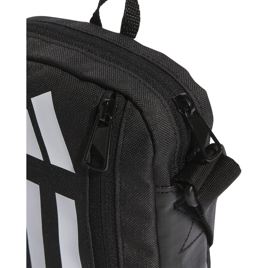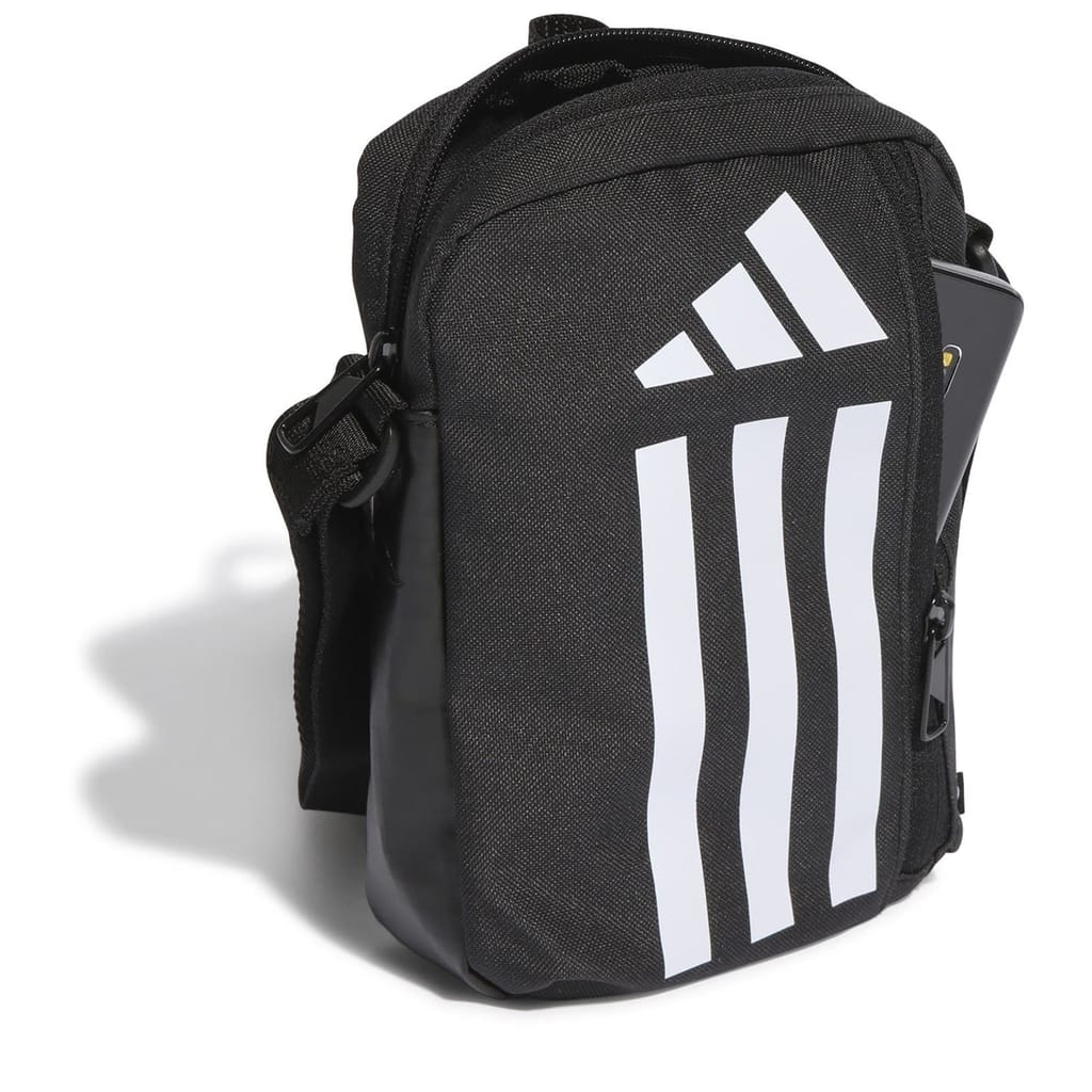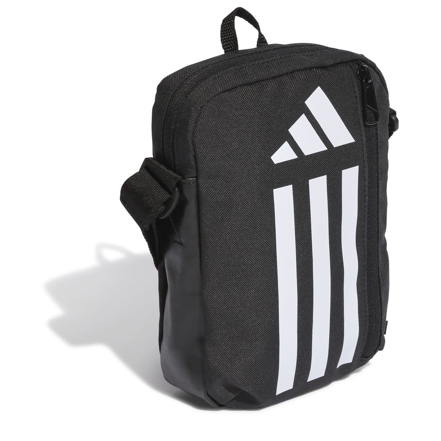 - Tote your training gear in style. This durable adidas shoulder bag offers a main compartment with an inner divider to keep you organised. Zip your phone and other essentials into the front pocket, and you're good to go. The shoulder strap adjusts for comfortable carrying, and prominent 3-Stripes branding offers a sporty finish.