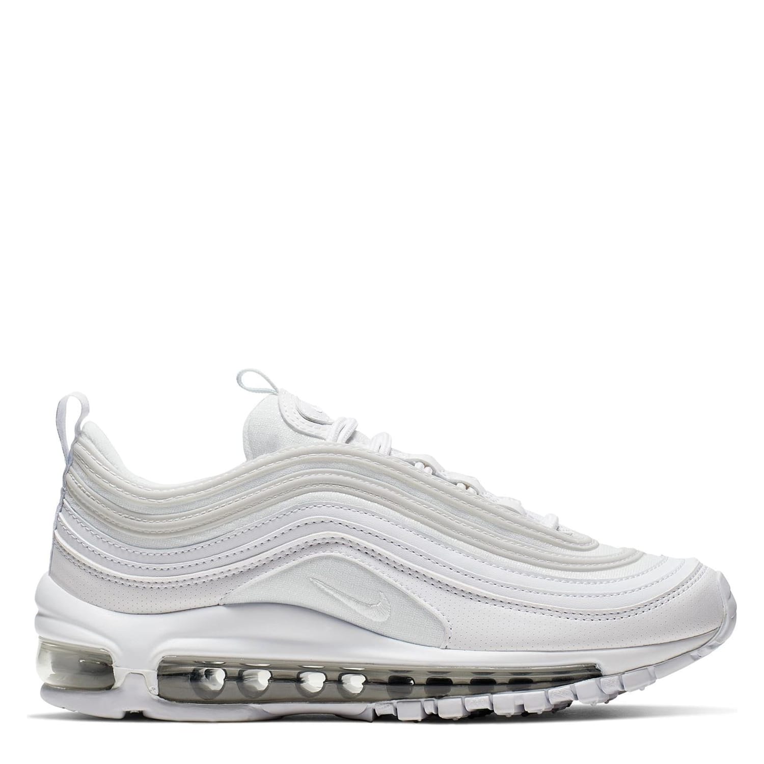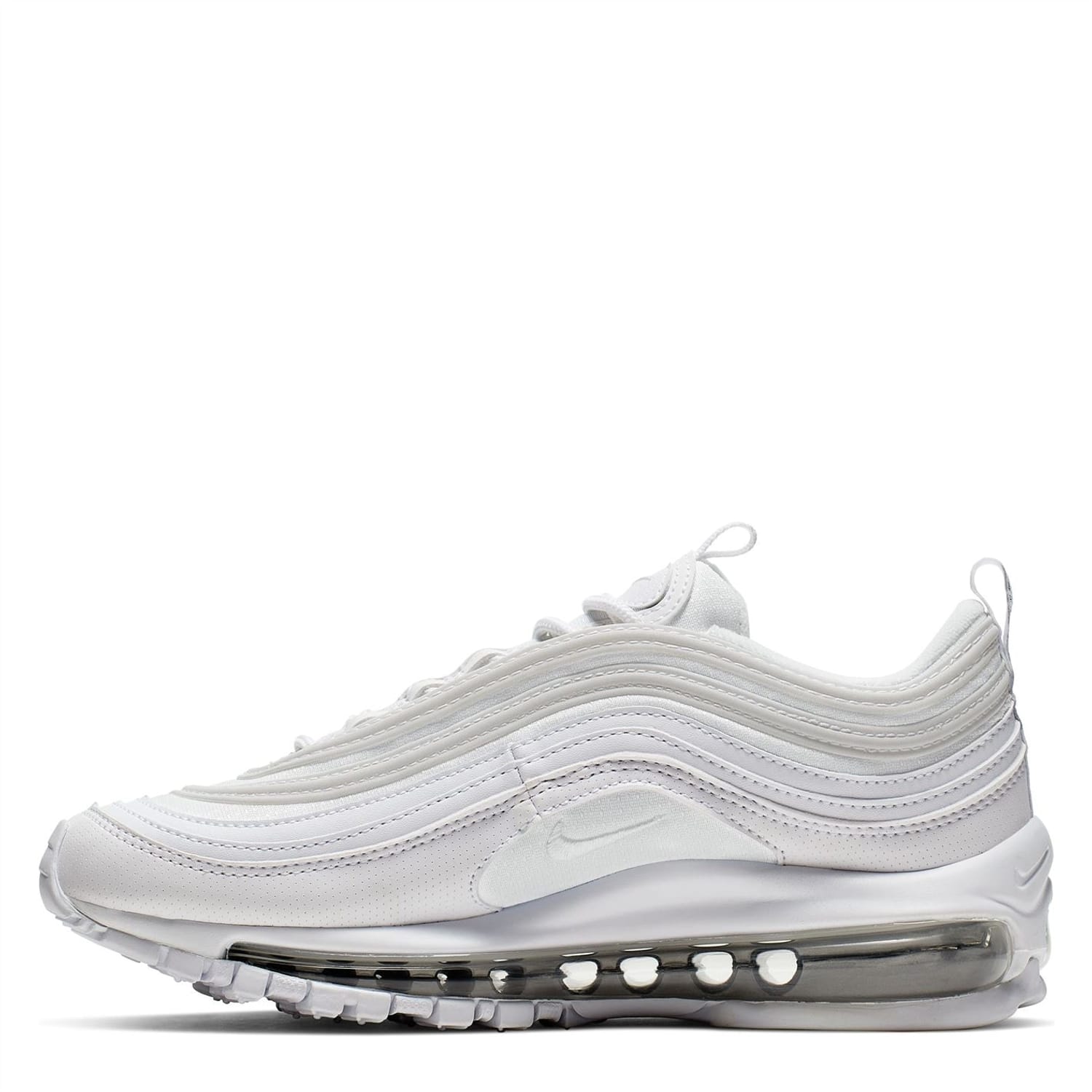 Get an iconic look with the Air Max 97 which benefits from having a full-length and visible Max Air unit to deliver lightweight cushioning with every step. The trainers feature water ripple-inspired lines to the upper, while the rubber outsole provides superior traction where you need it most the Nike Swoosh branding completes the 90s favourite which has been brought to a new generation.