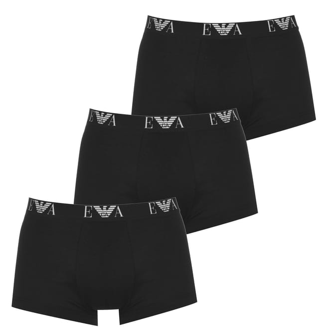 Acclaimed for its focus on contemporary trends and fine Italian craftsmanship, Emporio Armani garnered a legion of dedicated admirers, from David Beckham to Shawn Mendes and Rafael Nadal. This 3-Pack Monogram Logo Trunks is the ideal illustration of the label's engaging energy, adroitly fashioned in premium stretch cotton. Cut in a classic shape, this set features elasticated waistbands and flatlock stitching for comfort and to reduce chafing. The solid base colouring provides an arresting and stylish touch, and no Emporio Armani design is complete with the brand's monogram and Eagle motif stitched on the waistband to provide instant design recognition and premium appeal. Fabric composition: 95% cotton, 5% elastane; Elasticated waist: 87% polyester, 13% elastane. Machine wash at 30 degrees.