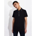 Interpreting smart with casual, this simple Polo from Armani Exchange will become a go to for every day wear, taking your casual fits to the next level. The Polo is decorated with block colour throughout and contrast trims for a classic look. Styling a 1/4 zip placket, ribbed pointed collar and short sleeves, this timeless yet urban Polo is finished with simple Armani Exchange branding panelling the front fastening. -