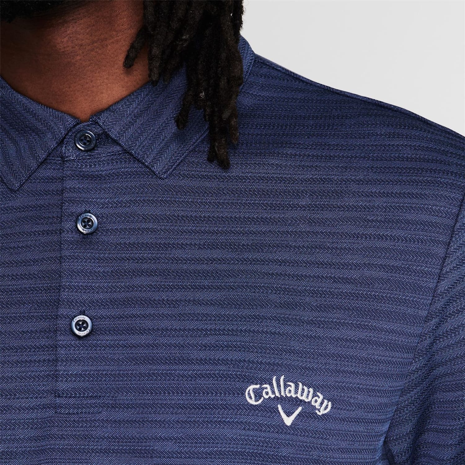 The Mens Callaway Herringbone Golf Polo Shirt is perfect for hitting the fairway, featuring a fold down collar, short sleeves, three button placket and a lightweight construction offers a lasting comfortable fit, completed with the Callaway logo embroidered to the top left chest. -