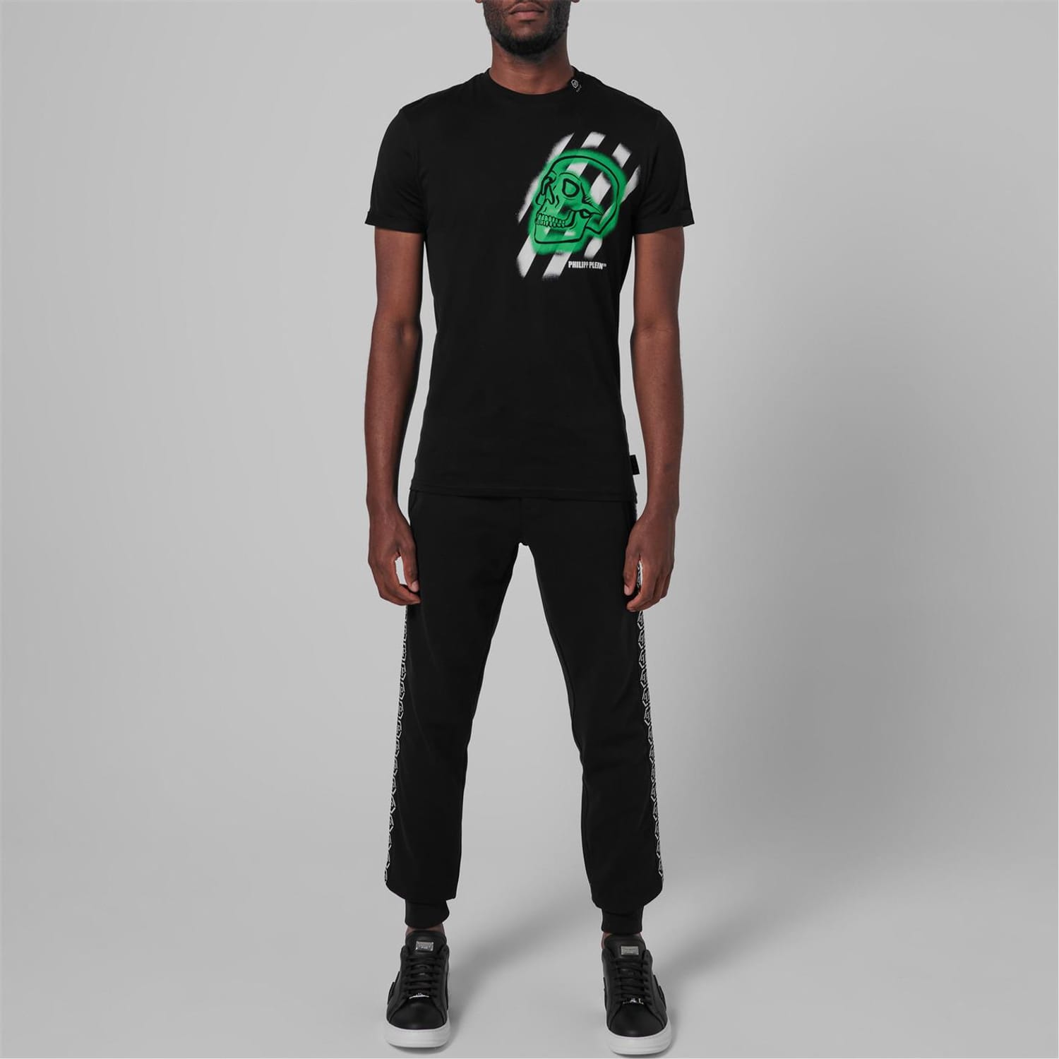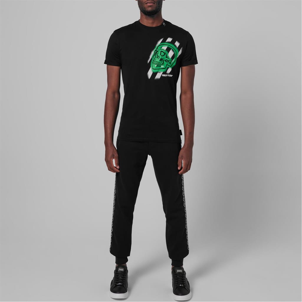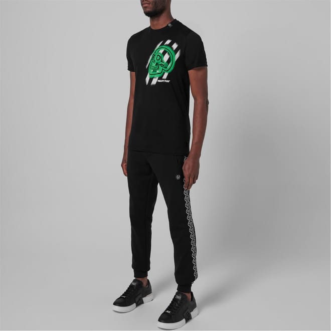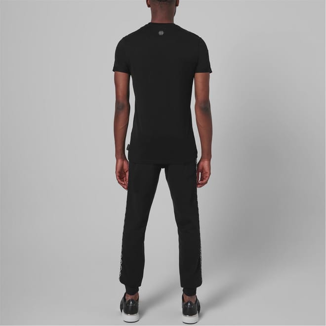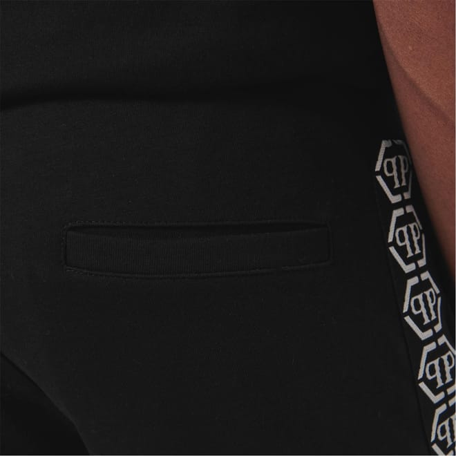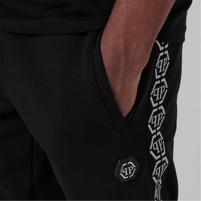 Complete your casual look, with these Tape Logo Joggers from Philipp Plein. Crafted in a polyester cotton mix, these jogging bottoms are cut in a regular fit and feature a stretchy drawstring waistband, three open pockets and ribbed cuffs for a comfortable wear. The look is finished with branded tape detailing down the legs and the brand's badge on the front for brand recognition. 60% Polyester, 40% Cotton. Machine washable at 30 degrees.