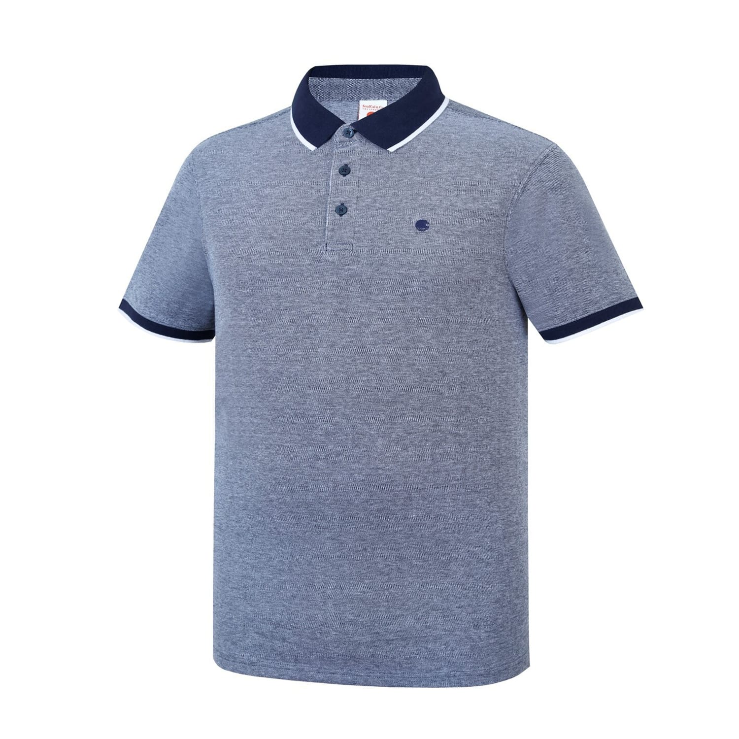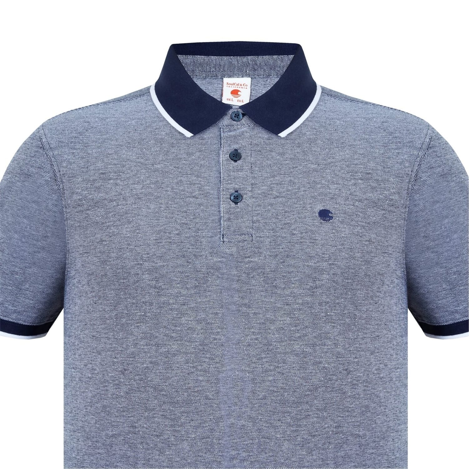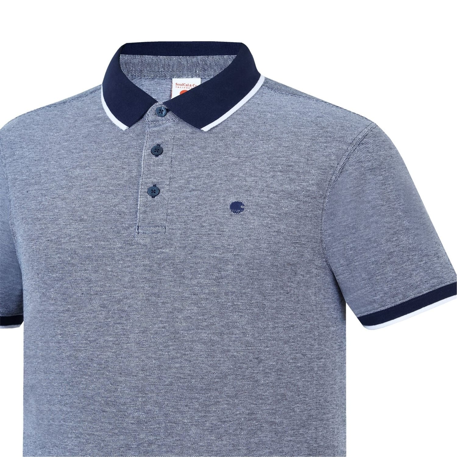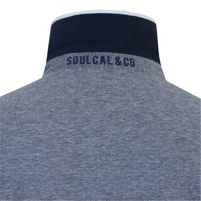 - Refresh your outwear selection with this Men's Pique Polo Shirt from SoulCal. Crafted from pique cotton, the polo features a 2 button placket with a cutaway collar, split hems and short sleeves with elasticated cuffs. There is a coloured accenting with an embroidered SoulCal logo on the chest to complete the look.