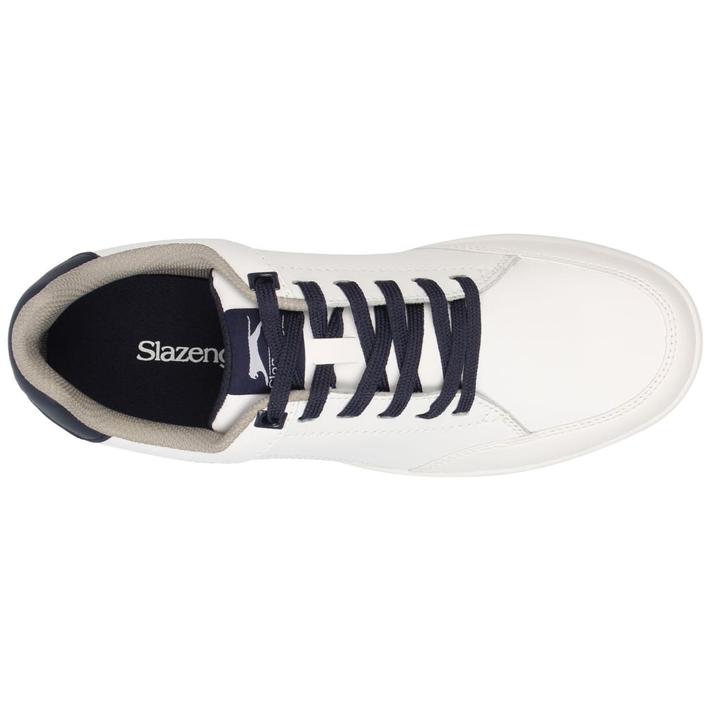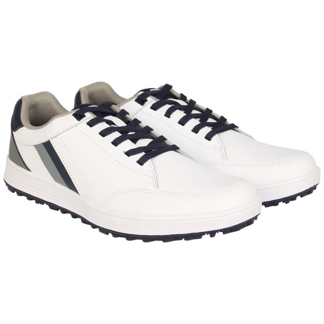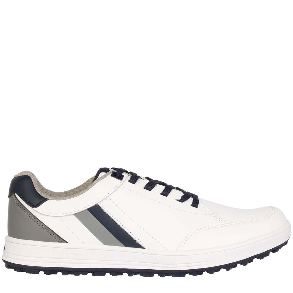 These Mens Slazenger Casual Golf Shoes are perfect for both the street and fairway, crafted with a shaped ankle collar, a lace fastening and a cushioned insole provides a secure and comfortable fit. A moulded outsole with a spikeless design provides a fantastic traction for those all important shots, completed with contrasting stripe detail to the side and the Slazenger branding. -