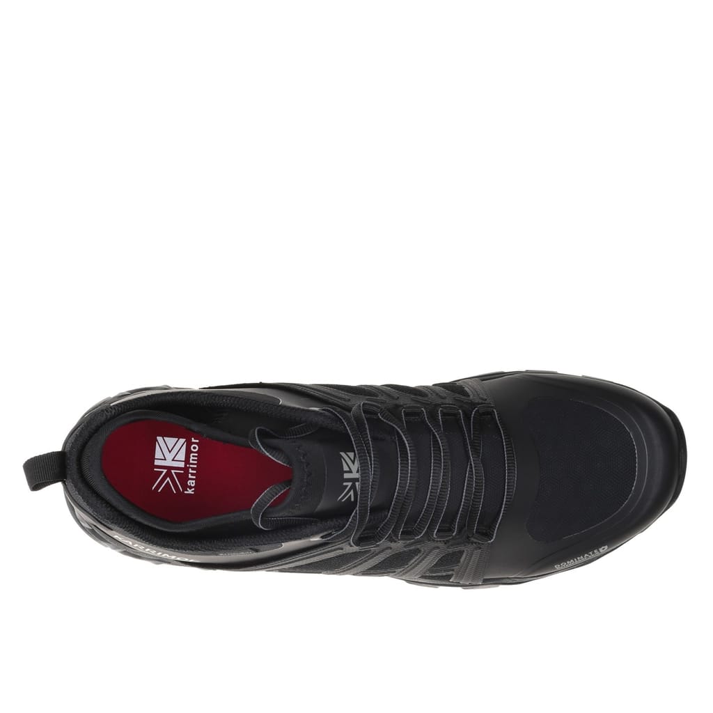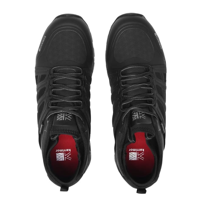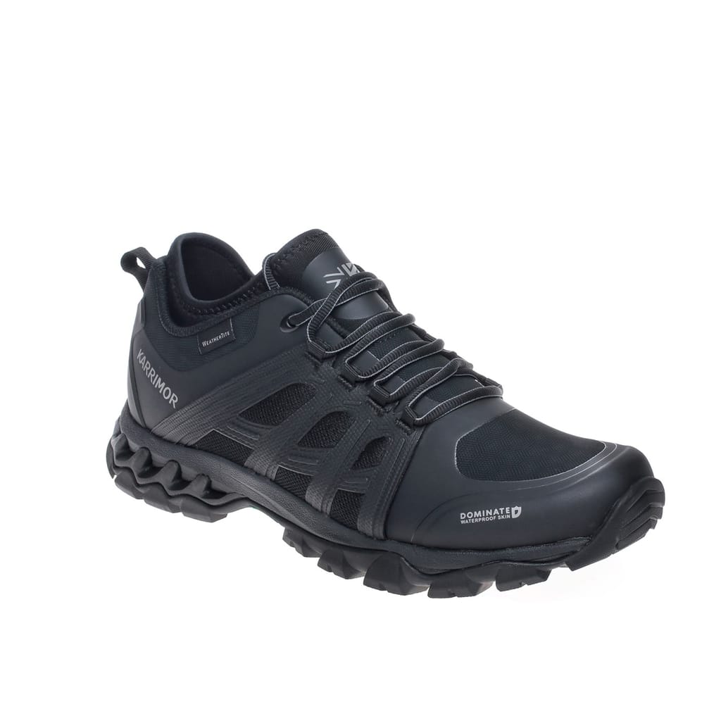 Karrimor waterproof walking shoe; unique DOMINATE single skin, 1 piece upper, seamless waterproof and breathable fabric construction with grippy DYNAGRIP outsole -