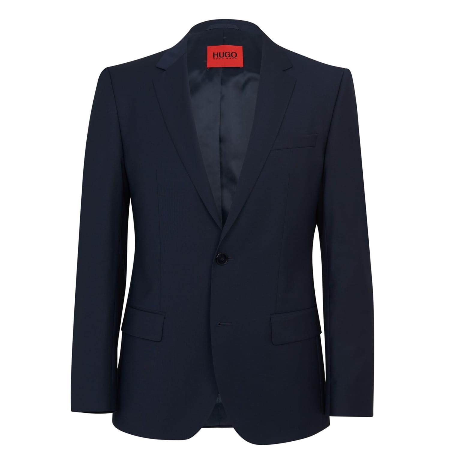 Distinguished tailoring meets modern design in this HUGO Henry Flex single-breasted suit jacket. A contemporary take on classic suiting, featuring clean lines and expert construction that speaks to the brand's commitment to precision. The distinctive red detailing on the cuff buttons adds a signature touch to this timeless piece, while the notched lapels maintain its traditional appeal. A two-button closure and flap pockets create a balanced silhouette that works across formal occasions.