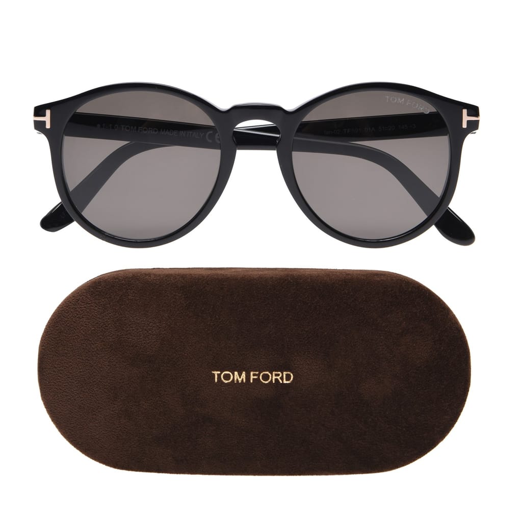 Protect your eyes from the sun wearing these Ian Sunglasses from Tom Ford. Crafted in Italy, these sunglasses are cut to a soft rounded acetate style with smoked lenses and a shiny palladium T logo to the temples and logo stamp for designer finish. You definitely do not want to miss out on these.