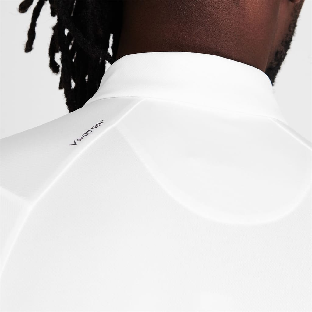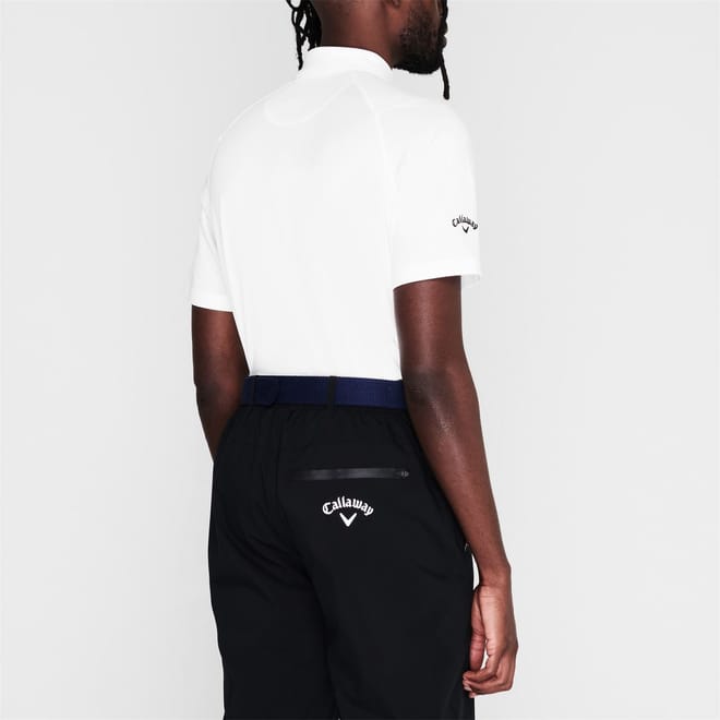 This Callaway Solid Polo Shirt is crafted with a folded collar and three button fastening placket for a classic look. It then also features short sleeves with ribbed trims for comfort and is a lightweight construction. This polo shirt is designed with a signature logo and is complete with Callaway branding. -