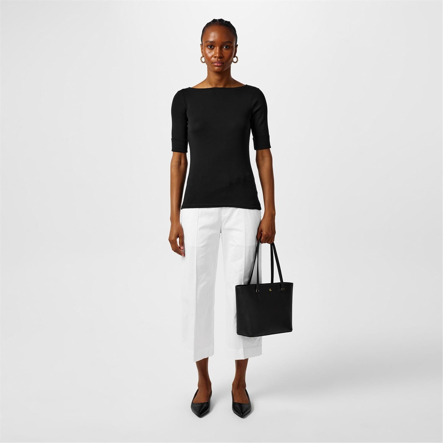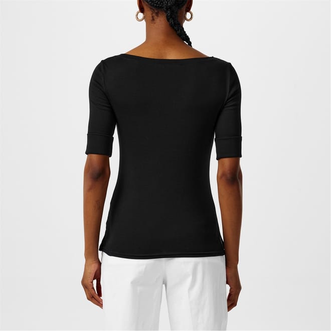 Bring luxe sophistication to your wardrobe staples with Lauren Ralph Lauren's Judy T-Shirt. Featuring the label's signature preppy monogram at the hem, this regular fit tee for women styles effortlessly into any ensemble, whether you are meeting friends for brunch, at the office, or relaxing at home.