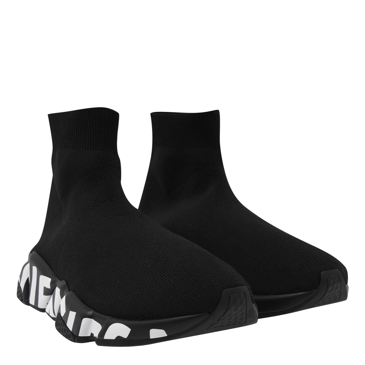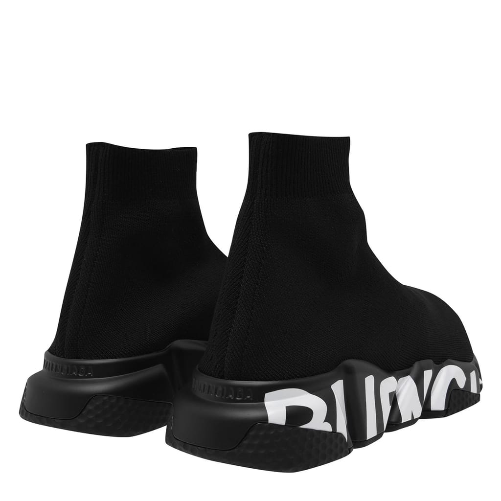Upgrade your sporty urban footwear with these Speed Graffiti Sneakers from Balenciaga. Constructed in a sock-like design with a technical 3D knit, an ultra-flex moulded sole and a 10 mm arch. Then further featuring an ergonomic no memory technology to the sole and a contrast graffiti logo to the sole for a design finish. You do not want to miss out on these.
