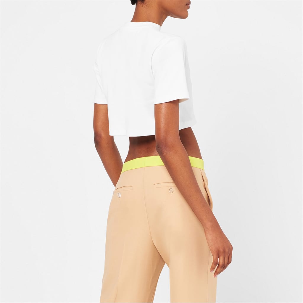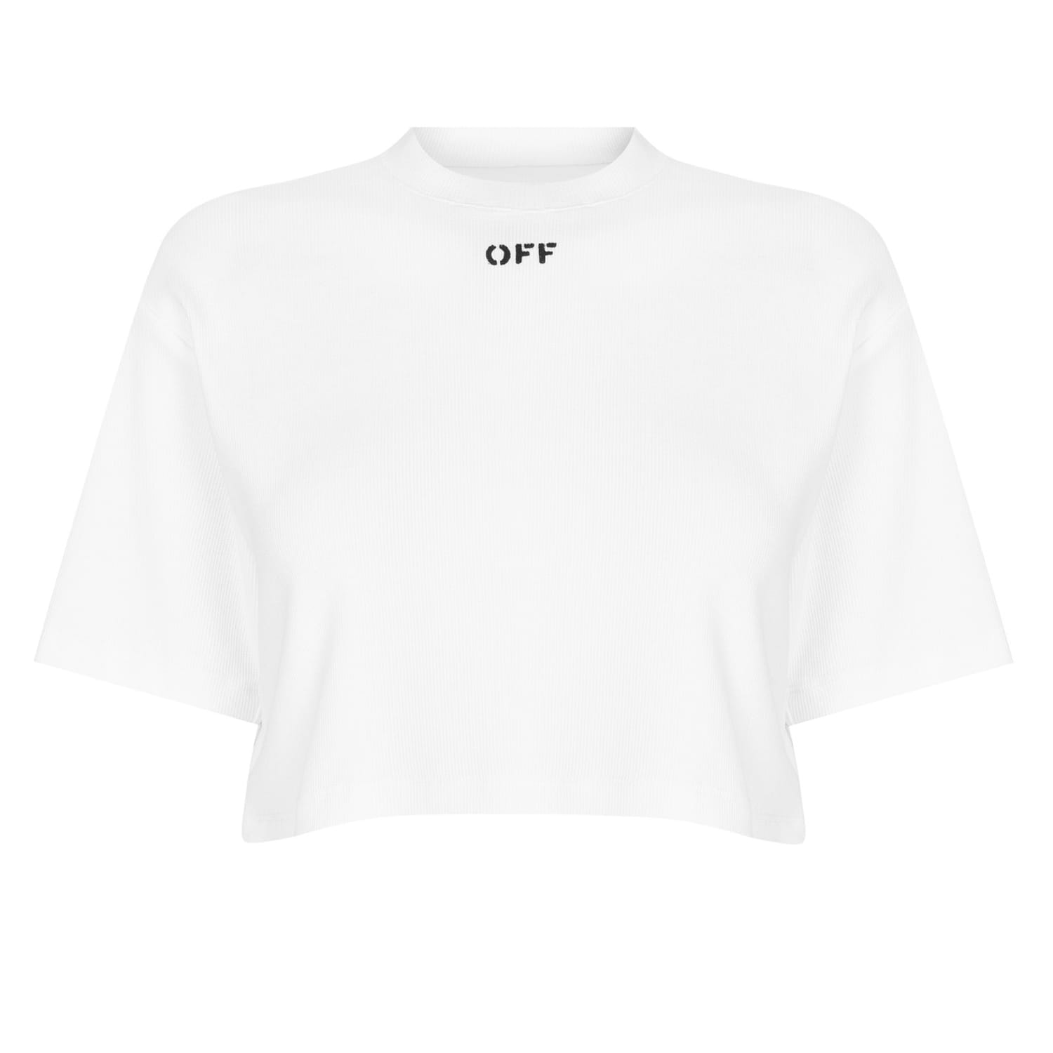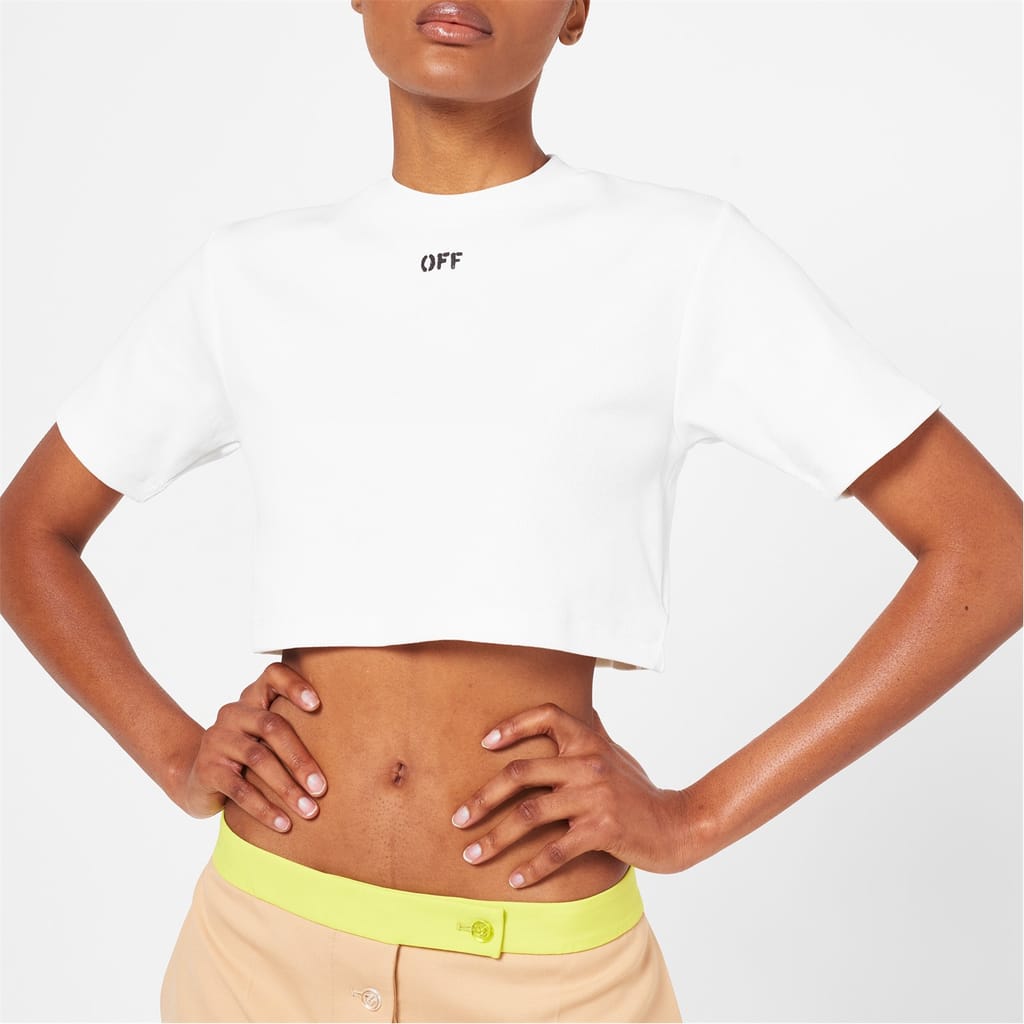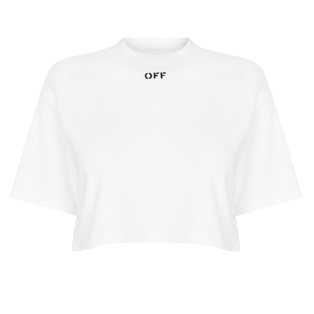 Fusing street culture with fine Italian craftsmanship, Off-White presents this modern Stamp Rib Cropped Tee. Ideal for nights out with friends or lounging at home after a busy week, this women's t-shirt is designed to style effortlessly into any casual ensemble and elevate your look.