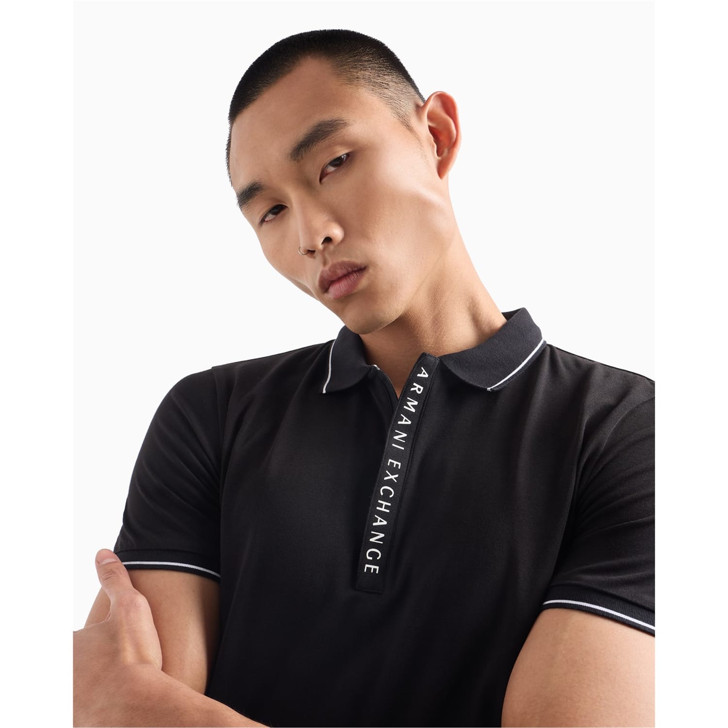 Interpreting smart with casual, this simple Polo from Armani Exchange will become a go to for every day wear, taking your casual fits to the next level. The Polo is decorated with block colour throughout and contrast trims for a classic look. Styling a 1/4 zip placket, ribbed pointed collar and short sleeves, this timeless yet urban Polo is finished with simple Armani Exchange branding panelling the front fastening. -