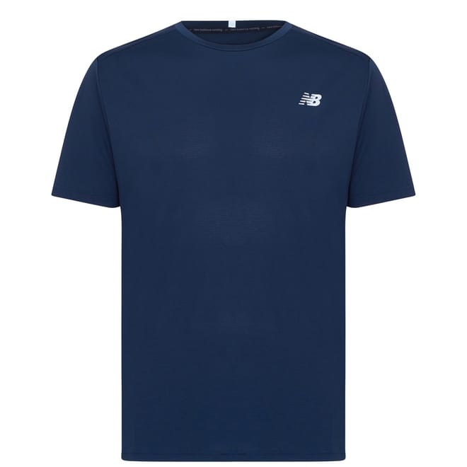 - Upgrade your running gear and push yourself on to a new PB in this Mens Running T-Shirt from New Balance. This tee benefits from NB Dry technology, helping to keep your body cool and dry during your exercise by wicking sweat away from your body and onto the outer surface of the top. The t-shirt is cut in a classic shape with a crew neck and short sleeves, while the minimalist sporty design is elevated by the iconic New Balance logo to the chest.Machine washable at 30 degrees.