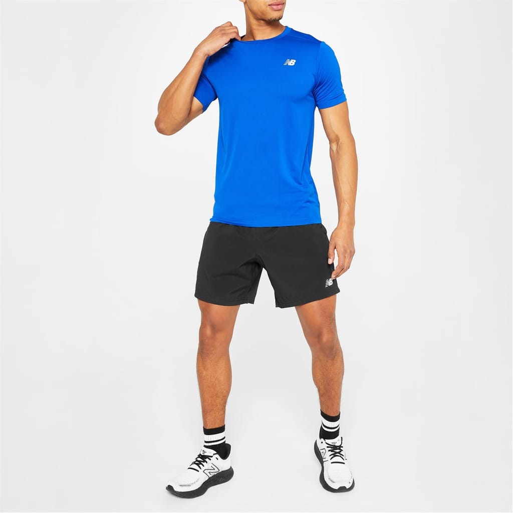 - Upgrade your running gear and push yourself on to a new PB in this Mens Running T-Shirt from New Balance. This tee benefits from NB Dry technology, helping to keep your body cool and dry during your exercise by wicking sweat away from your body and onto the outer surface of the top. The t-shirt is cut in a classic shape with a crew neck and short sleeves, while the minimalist sporty design is elevated by the iconic New Balance logo to the chest.Machine washable at 30 degrees.
