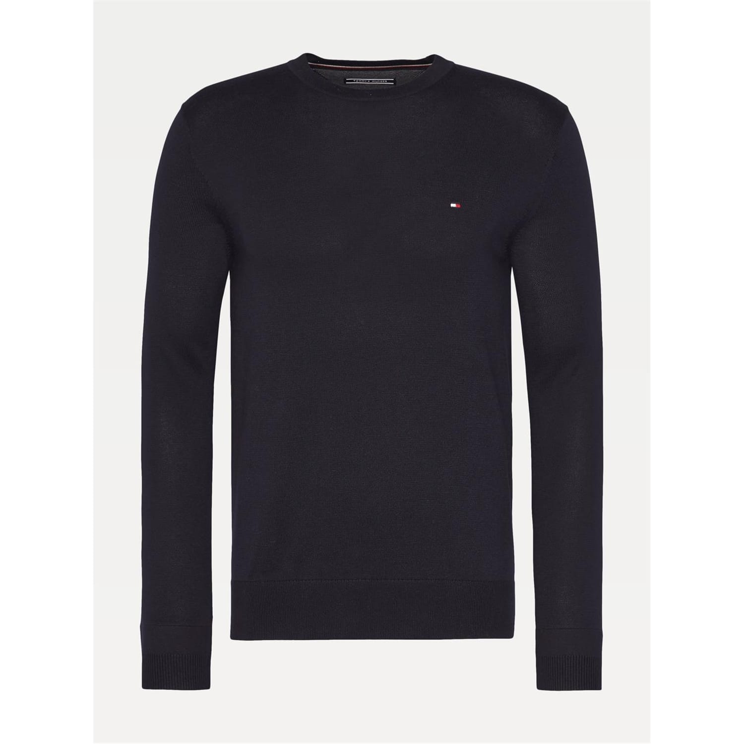 Add to your casual collection with this Crew Neck Jumper from Tommy Hilfiger. Crafted in a soft cotton mix, this jumper features a classic crew neckline with long sleeves and ribbed trims. The look is finished with the brand's signature logo embroidered to the chest.