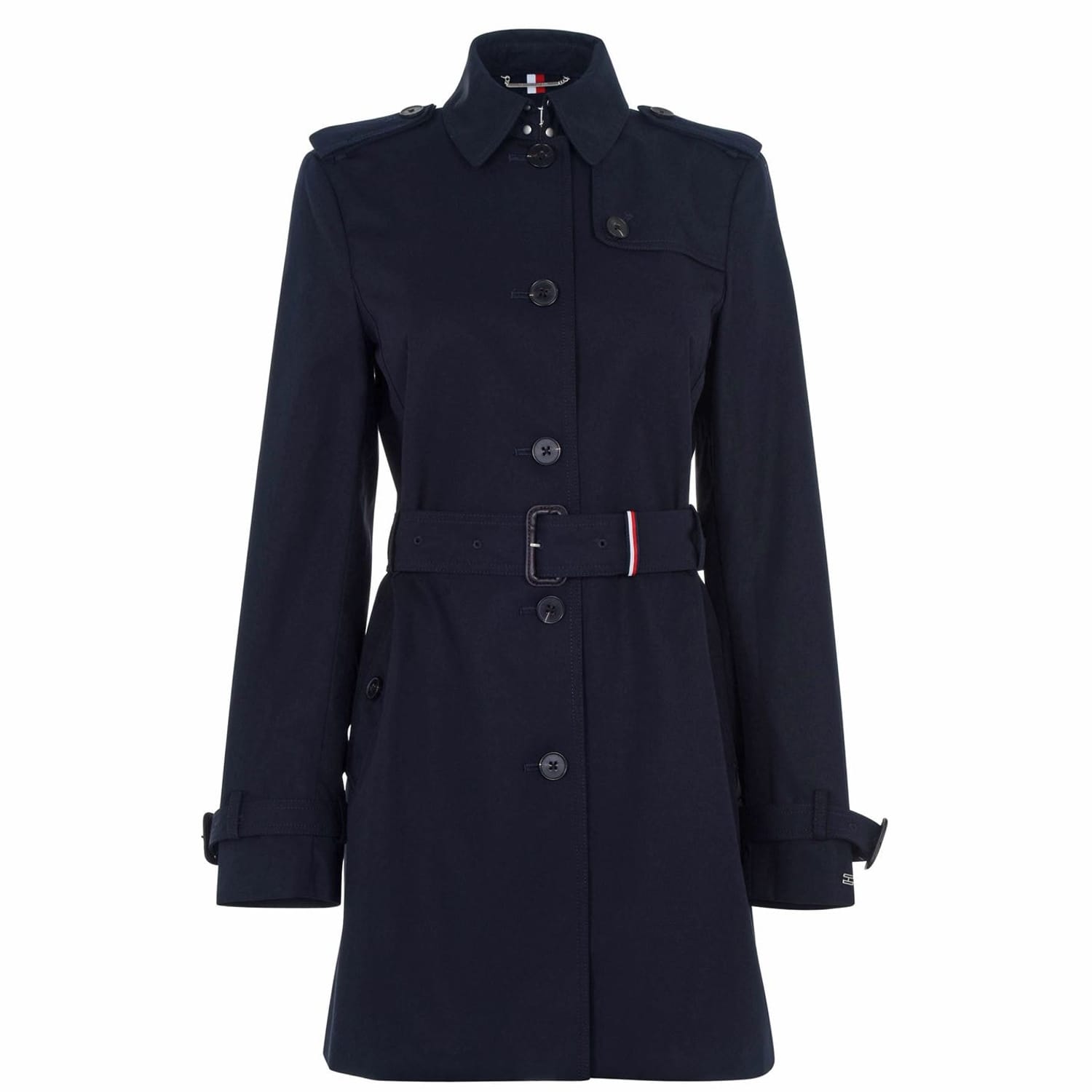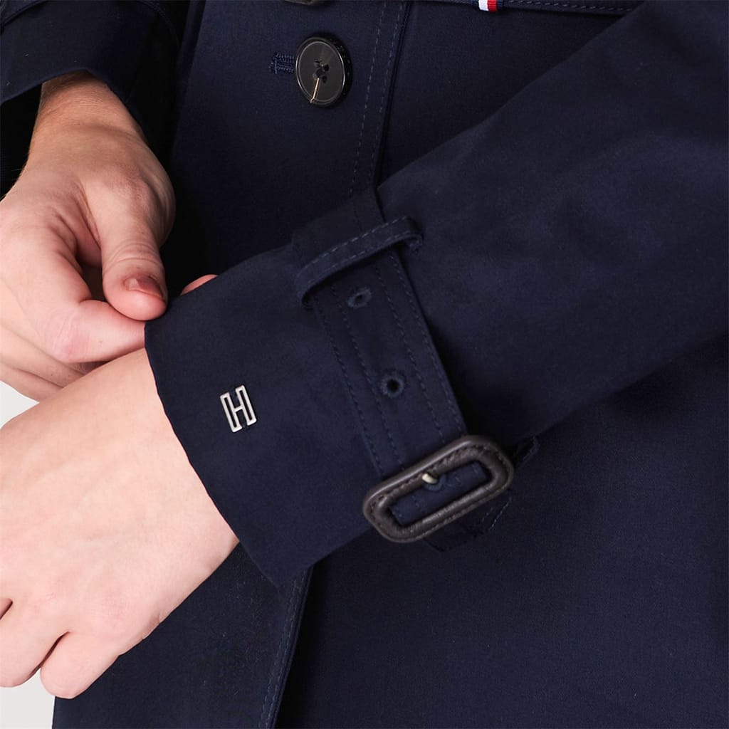 Complete your stylish ensemble with the Tommy Hilfiger Heritage Trench Coat. The design features a button up front fastening, structured shirt collar and adjustable buckle cuffs at the arms for a classic trench coat look. The buckle waistbelt with Tommy Hilfiger's iconic colours is the perfect finishing touch on a high quality coat.