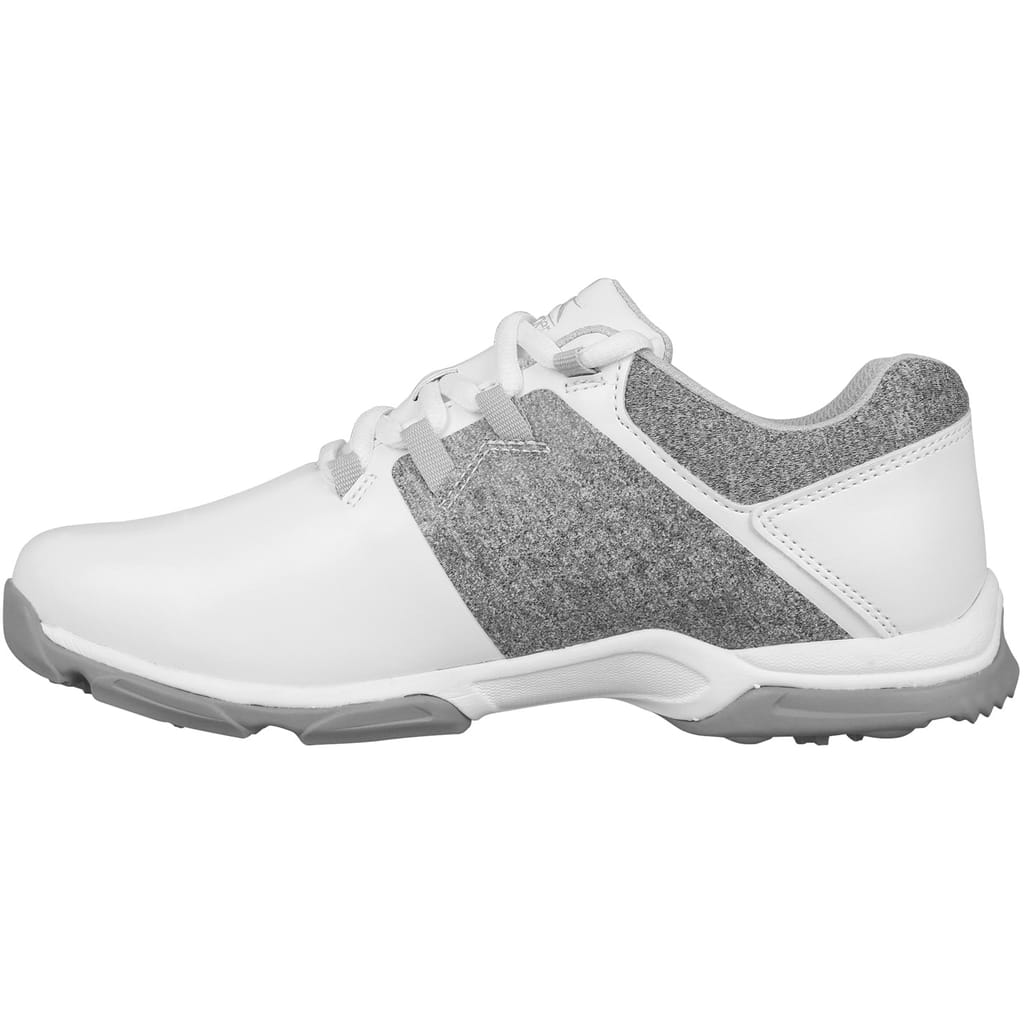 The Slazenger V200 Ladies Golf Shoes are perfect for the fairway, crafted with a spikeless sole that provides fantastic traction, along with a shaped ankle collar and lace fastening for a secure fit, completed with the Slazenger branding. -