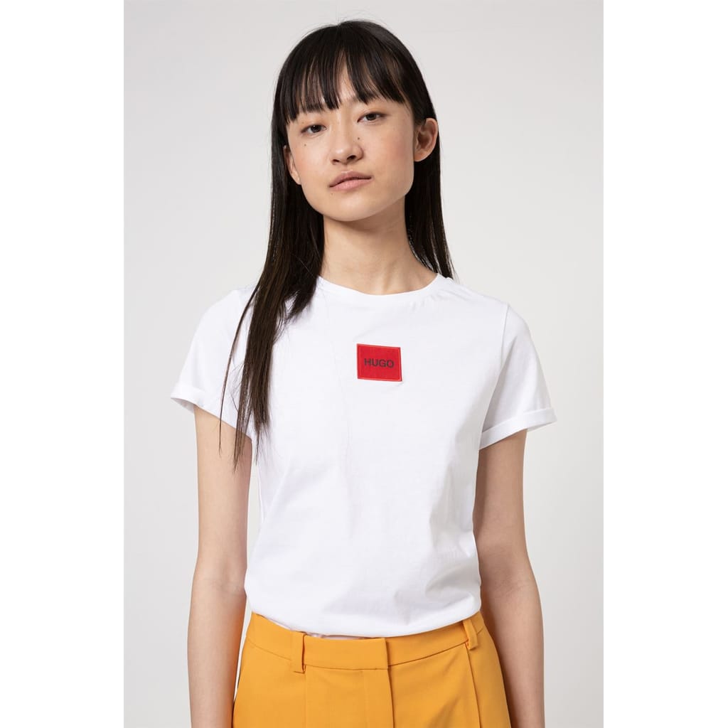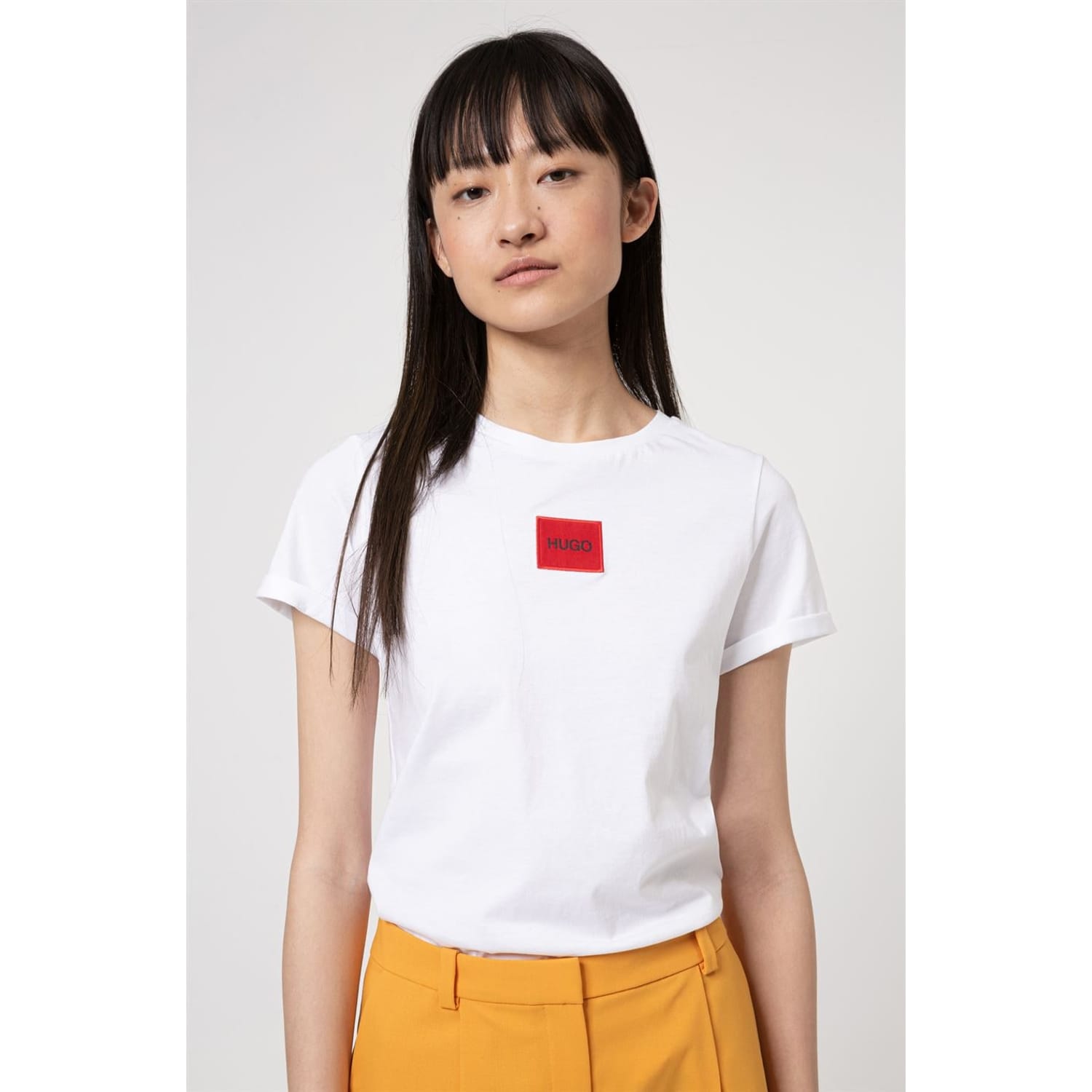 The Hugo The Slim Tee Red Label is a statement piece for any wardrobe, featuring a lightweight design with a crew neck collar, short sleeves and flat lock seams that offer all day comfort, the iconic red label with the Hugo branding to the cente chest completes the look. -