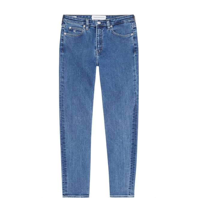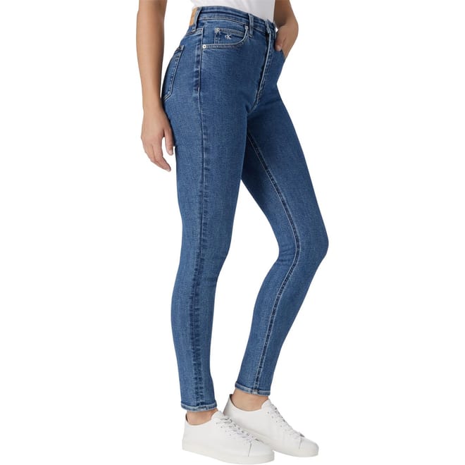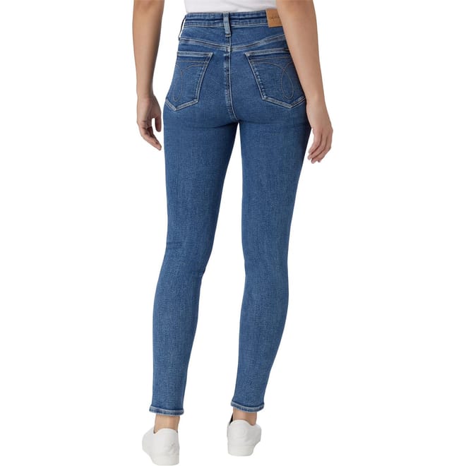 Refresh your collection with these Calvin Klein Jeans High Rise Skinny Jeans. Constructed with a button fastening waist and zip up fly for a secure fit, it features belt loops and five pockets for a classic look. These jeans are designed with a signature logo and are complete with Calvin Klein Jeans branding. -