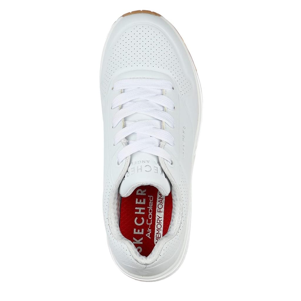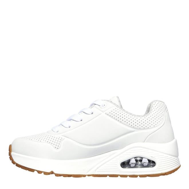 Update your trainer collection with these Skechers UNO Stand On Air Trainers. Constructed from a smooth synthetic-leather upper with Air Cooled Memory Foam insole for comfort with every step, these trainers are crafted with lace-up fastening, perforated accents for a breathable wear and padded collar and tongue for additional support. -