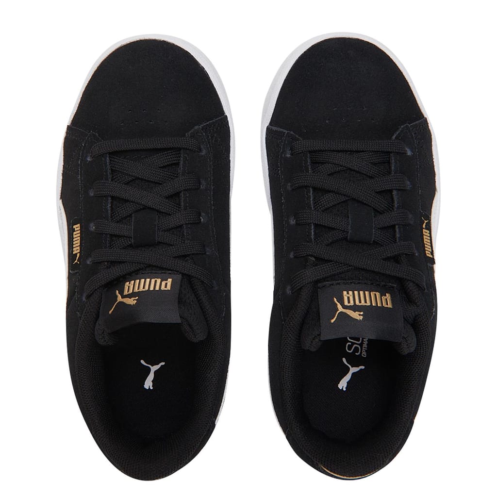The Puma Jada Suede Child Girls Trainers are perfect for everyday wear, crafted with a low profile ankle collar teamed with a lace fastening that provides a secure fit, while a cushioned insole and misole ensures all day comfort. A contrasting chunky outsole coupled with tonal stitching to the upper that gives a simple but stylish look, completed with the Puma branding to the side. -
