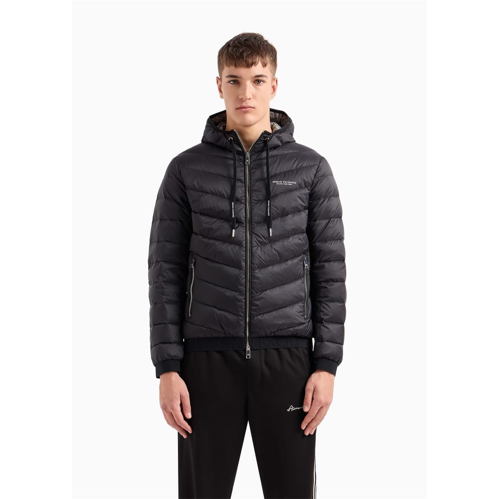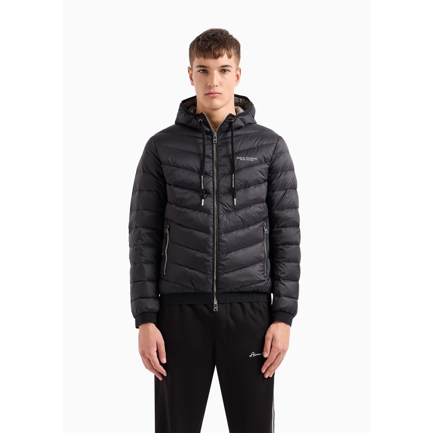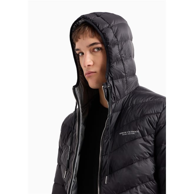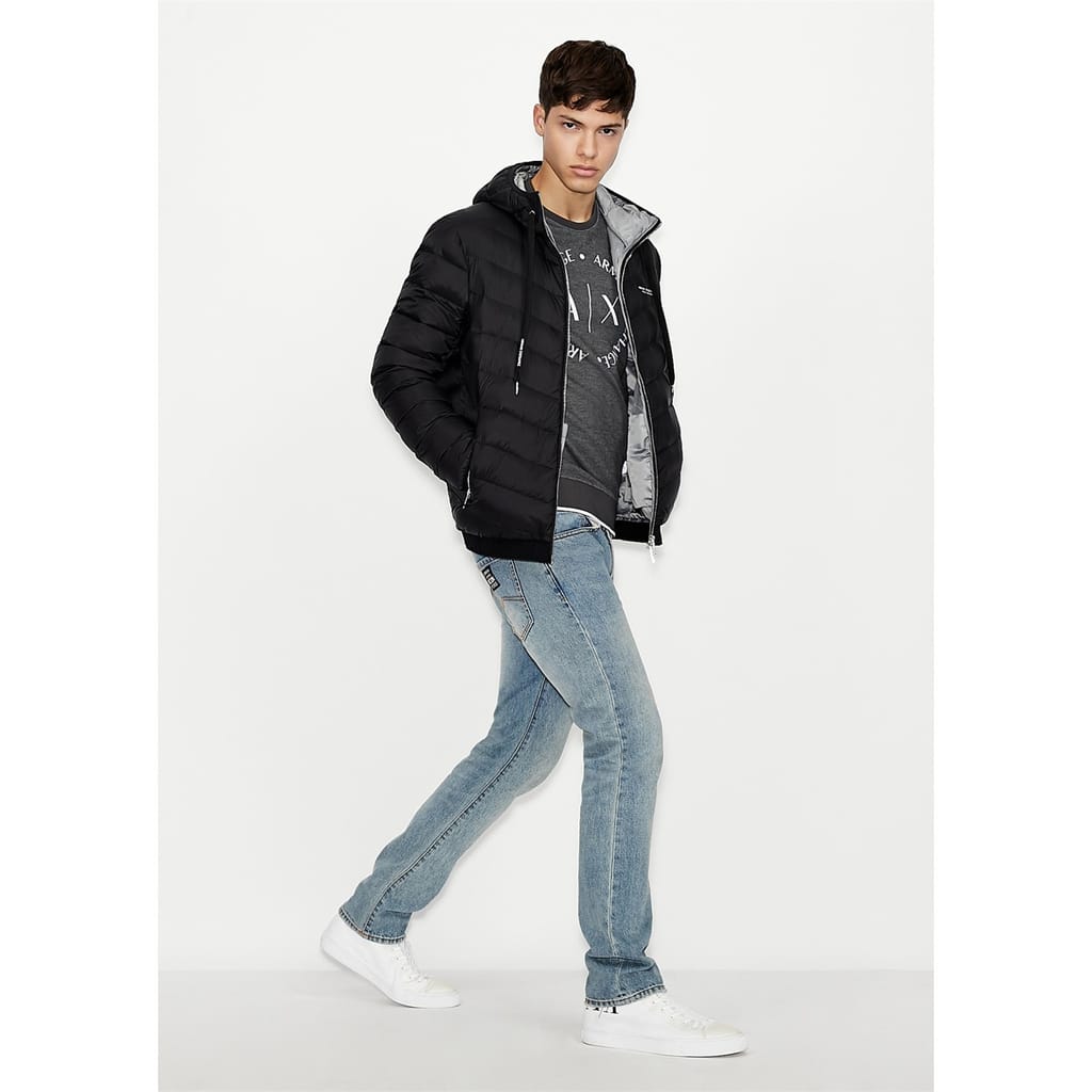 The iconic Armani Exchange Giacca Piumino Puffer Jacket is a great addition to your outerwear collection. Crafted in a durable nylon fabrication, this jacket features a hooded neckline with a drawstring fastening, a two way central zip closure, two zipped front pockets, long sleeves, quilted stitching with a lightweight fill and elasticated trims to the cuffs and hem for a comfortable fit. Decorated in a solid colourway throughout, the design is elevated with the Armani Exchange logo printed to the chest and is finished with a lightweight fill to provide warmth during the cold winter months. You do not want to miss out on this one. Fabric: 100% polyamide. Padding: white duck down, 20% white duck feather. Lining: 100% polyester. Machine washable at 30 degrees. -