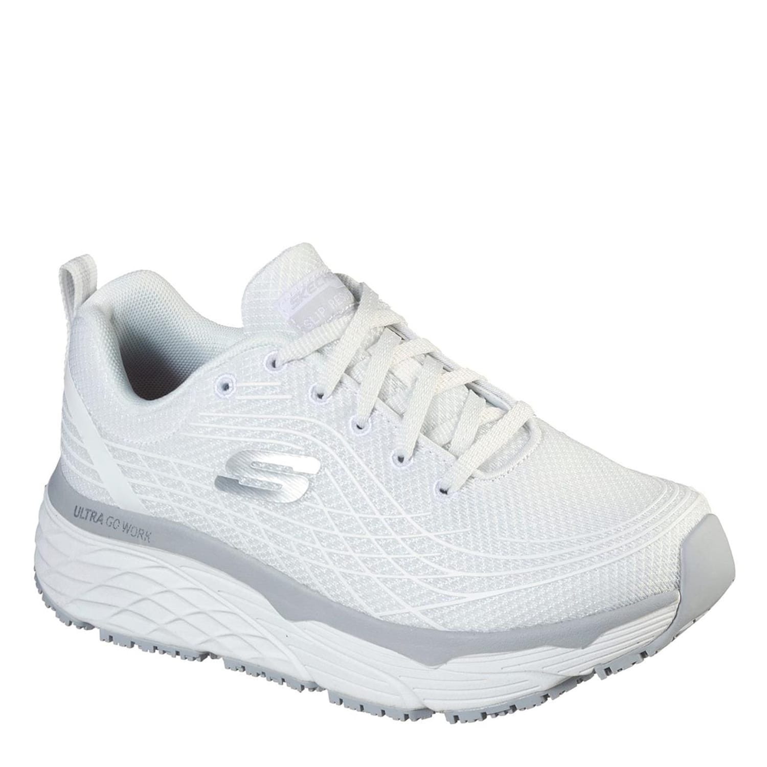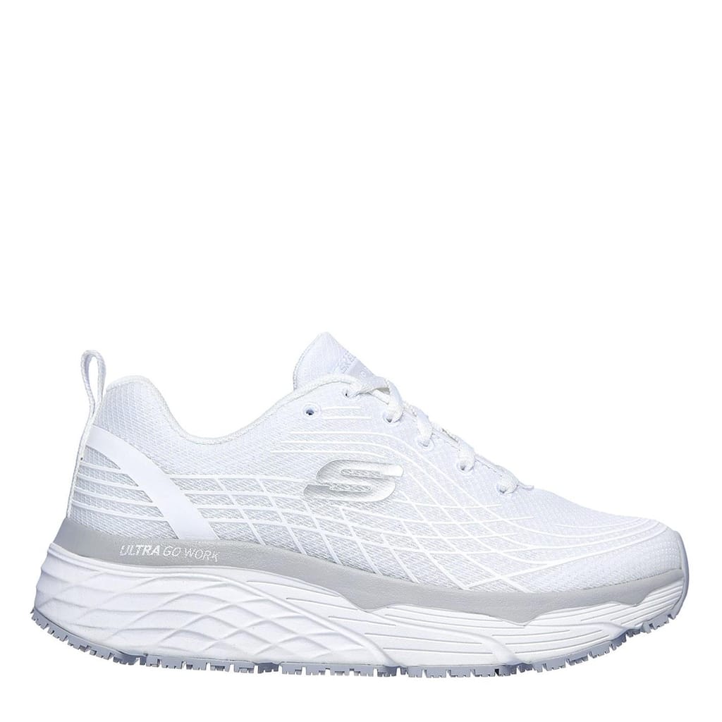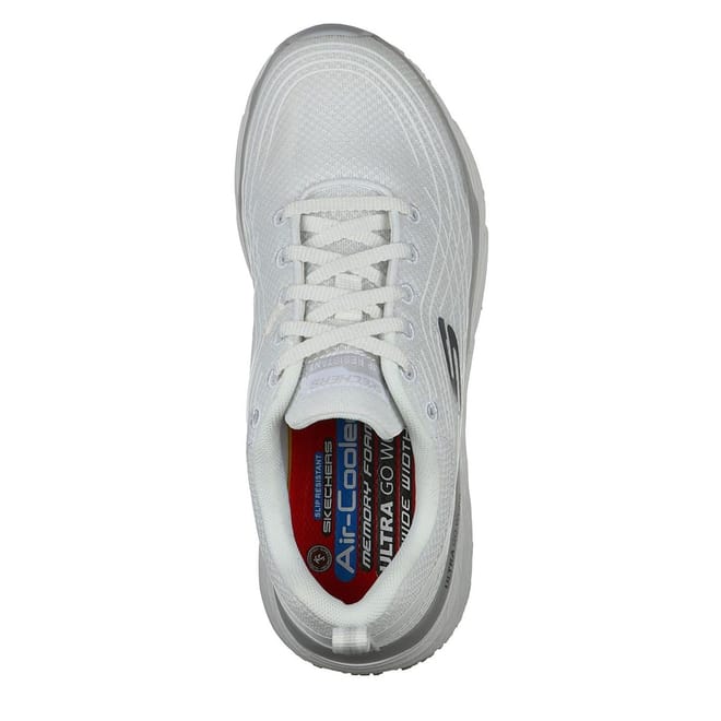 In a standard fit for all day comfort, this low top silhouette has been made from a breathable mesh knit fabrication boasting a solid block colour and tonal pattern details to the sides. Sat upon a cushioned platform sole with a shock-absorption feature for the toughest activities, these trainers have a full lace fastening and small pull tab to the heel branded with a Sketchers logo adorned to the side. -