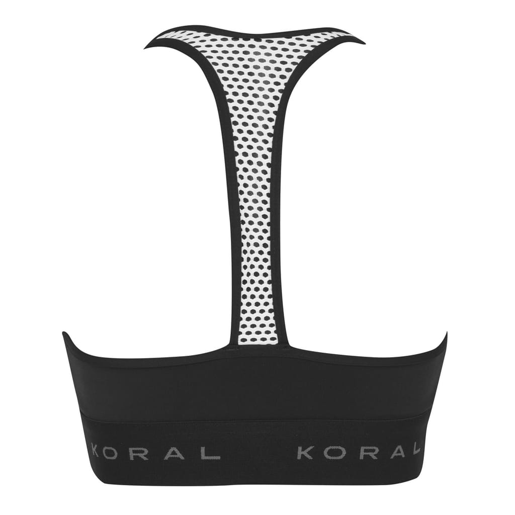 Elevate your everyday collection with this Koral Emblem Bra. The piece is crafted with a thick and soft fabric that is stretchable and sweat wicking great for exercise. The bra has a ribbed trim for comfort with a solid colour throughout, a racer back design, scoop neckline and elasticated under band with contrast Koral branding across it to complete with appearance.