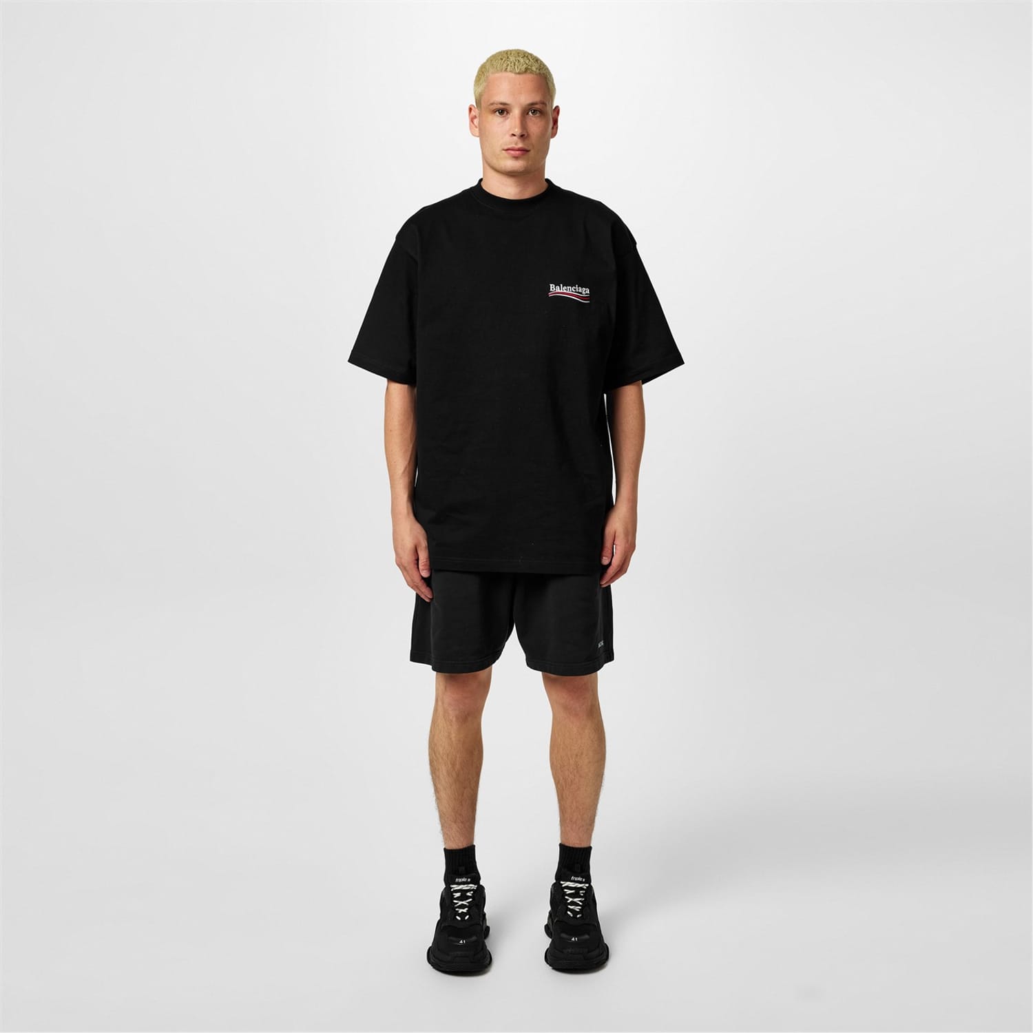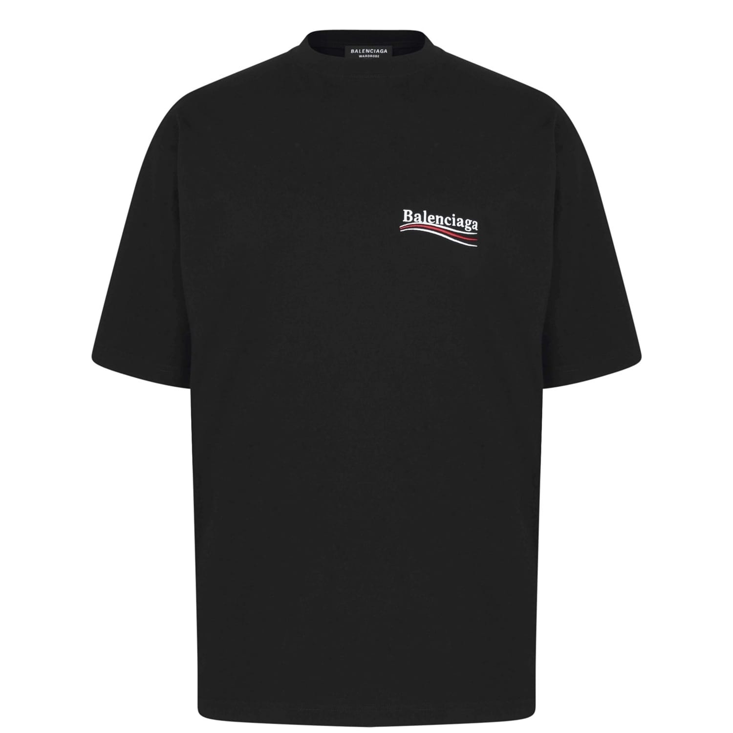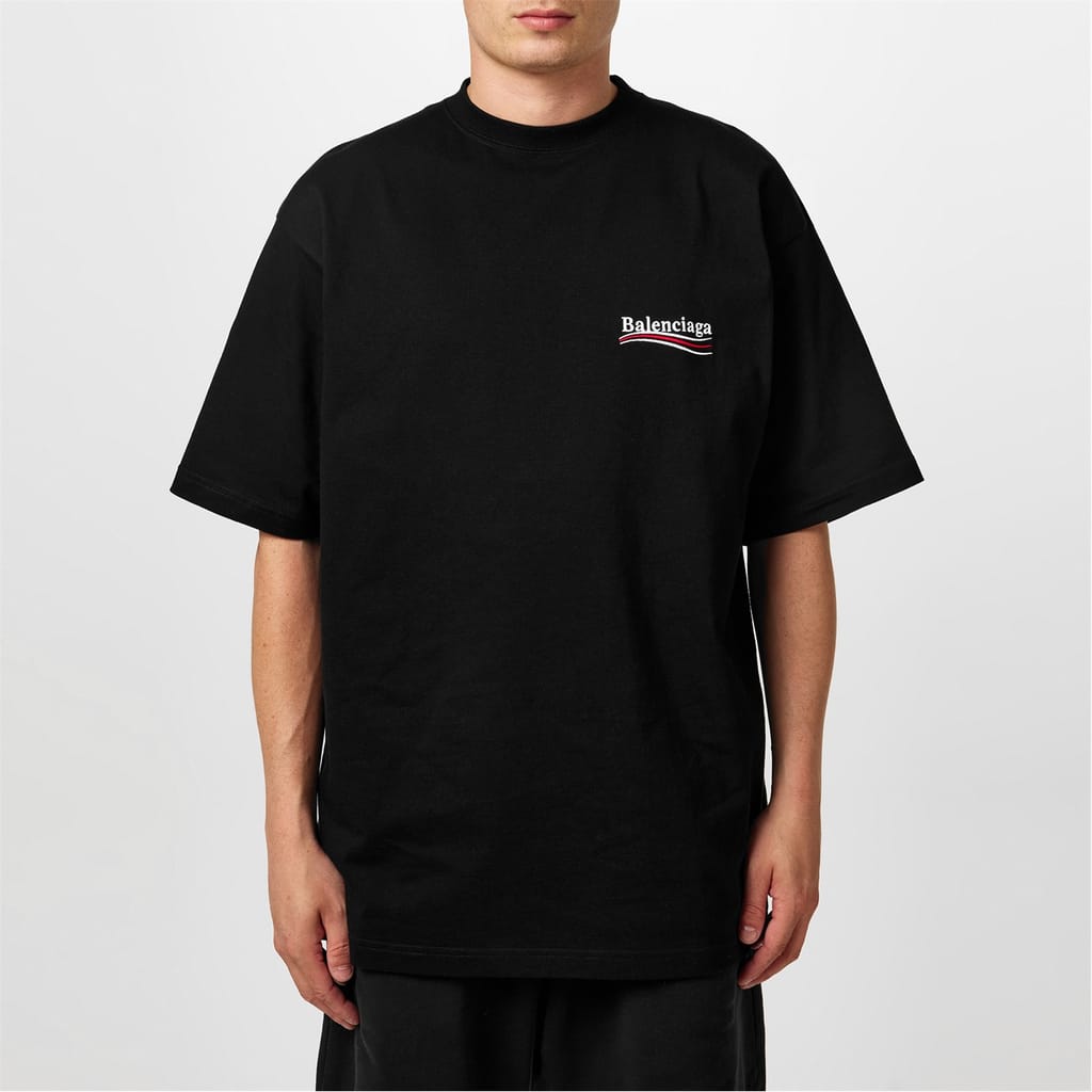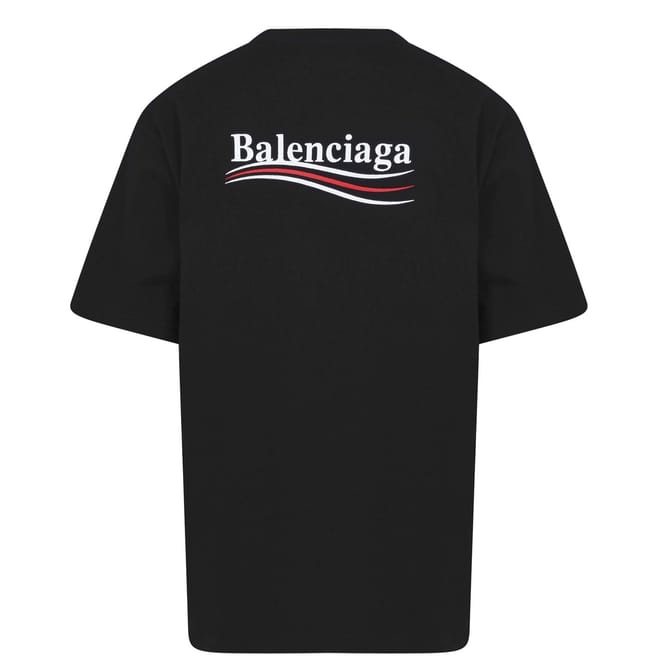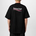 - Balenciaga's iconic Political Campaign logos at the chest and rear provide instant brand recognition.