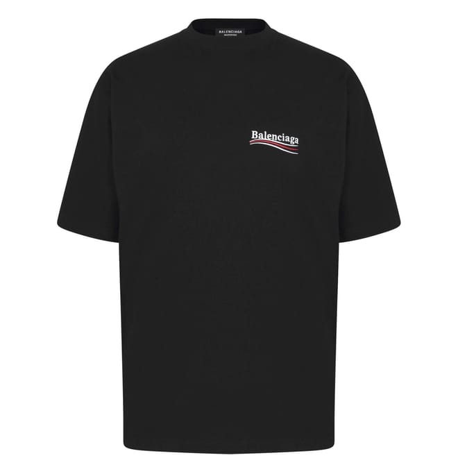 Invest in your wardrobe staples with Balenciaga's signature Political Campaign T-Shirt. Featuring dropped shoulders for a slouchy look, this short sleeved t-shirt is the ideal choice for nights out with friends, relaxing at home, or visiting relatives at the weekend.