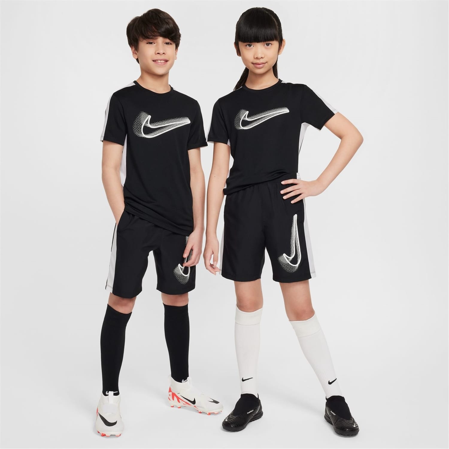The Nike Dri-FIT Academy Big Kids' Graphic Soccer Shorts are perfect for training sessions and matches, crafted with an elasticated waistband with flat lock seams that provides a comfortable fit. Dri-Fit technology helps to wick sweat away from the skin to keep you feeling cool and the Swoosh branding to the side completes the look. -