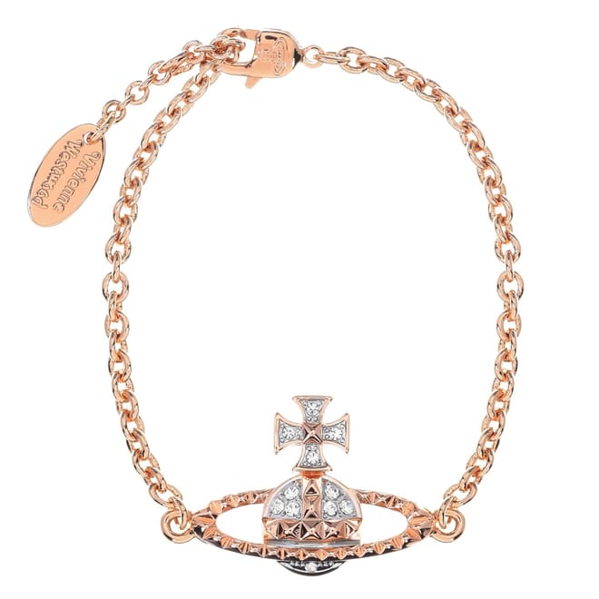 Bring luxe sophistication to your jewellery collection with the Mayfair Bas Relief Bracelet from Vivienne Westwood. Adroitly cast in durable brass and featuring an adjustable fine trace chain with a lobster claw clasp, this luxuriant piece is defined by a preciosa crystal embellished Saturn Orb charm- an iconic Vivienne Westwood motif that made it's first debut in 1986. Accompanied with luxury brand packaging and a protective dust bag. Dimensions: Adjustable chain length: 15.5 - 17.5cm. Weight: 8 grams.