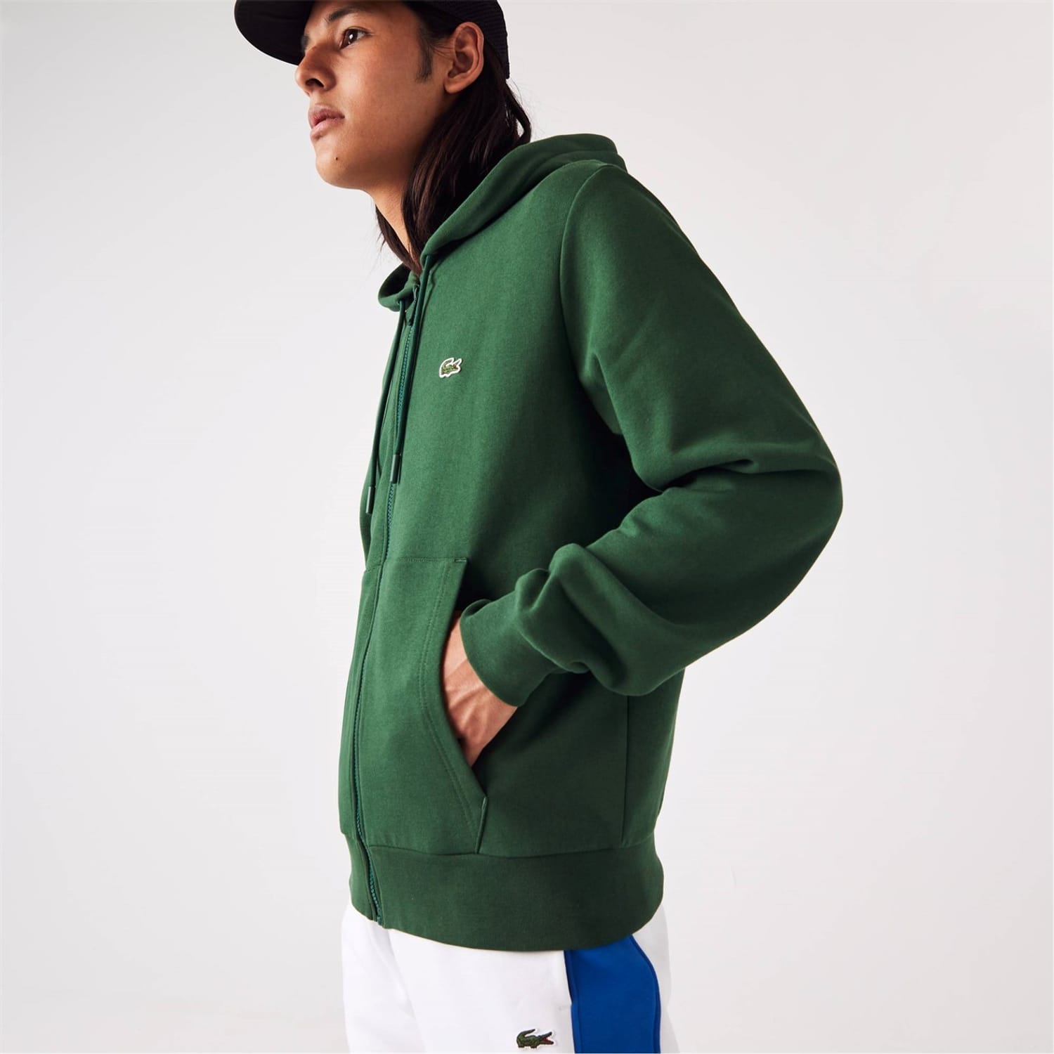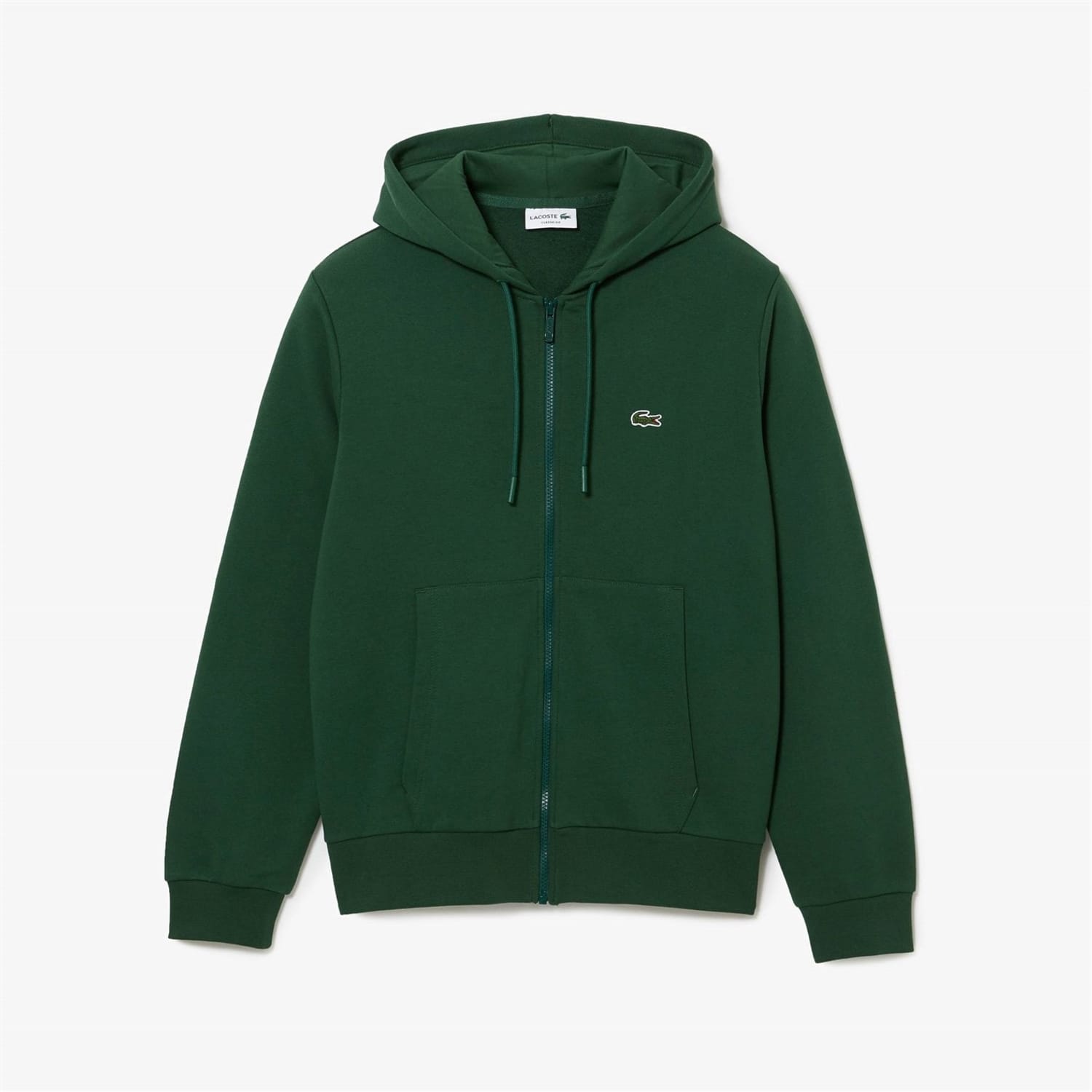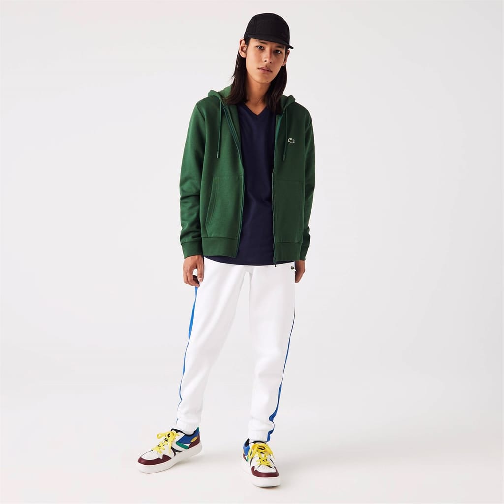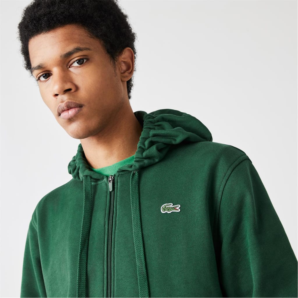 Revitalise your off-duty attire with Lacoste's Embroidered Croc Zip Hoodie, brought to you by Lacoste. Adroitly crafted in an organic cotton blend, this classic piece features a hooded drawstring neckline with tonal eyelets and aglets, full-length sleeves, a central zip fastening, two pockets on the front, tonal stitching, and ribbed trims to the cuffs and straight hem. Solid block colouring provides excellent flexibility when styling this piece into any layered ensemble, and the house's iconic Croc logo embroidered on the chest offers instant brand recognition. Fabric composition: 84% organic cotton, 16% polyester; Rib edge: 99% cotton, 1% elastane; Hood lining: 100% cotton. Machine wash at 30 degrees.