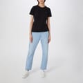 - The five-pocket design with metallic rivets provides a classic silhouette.