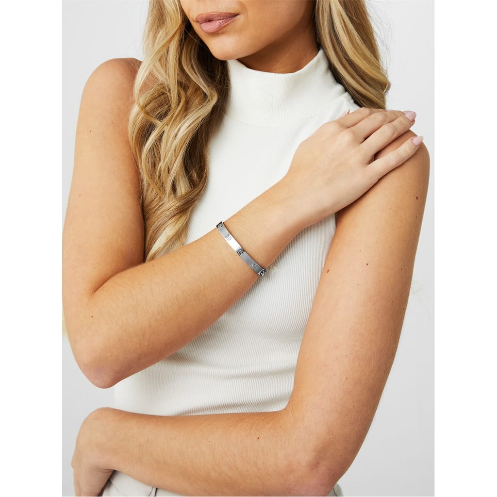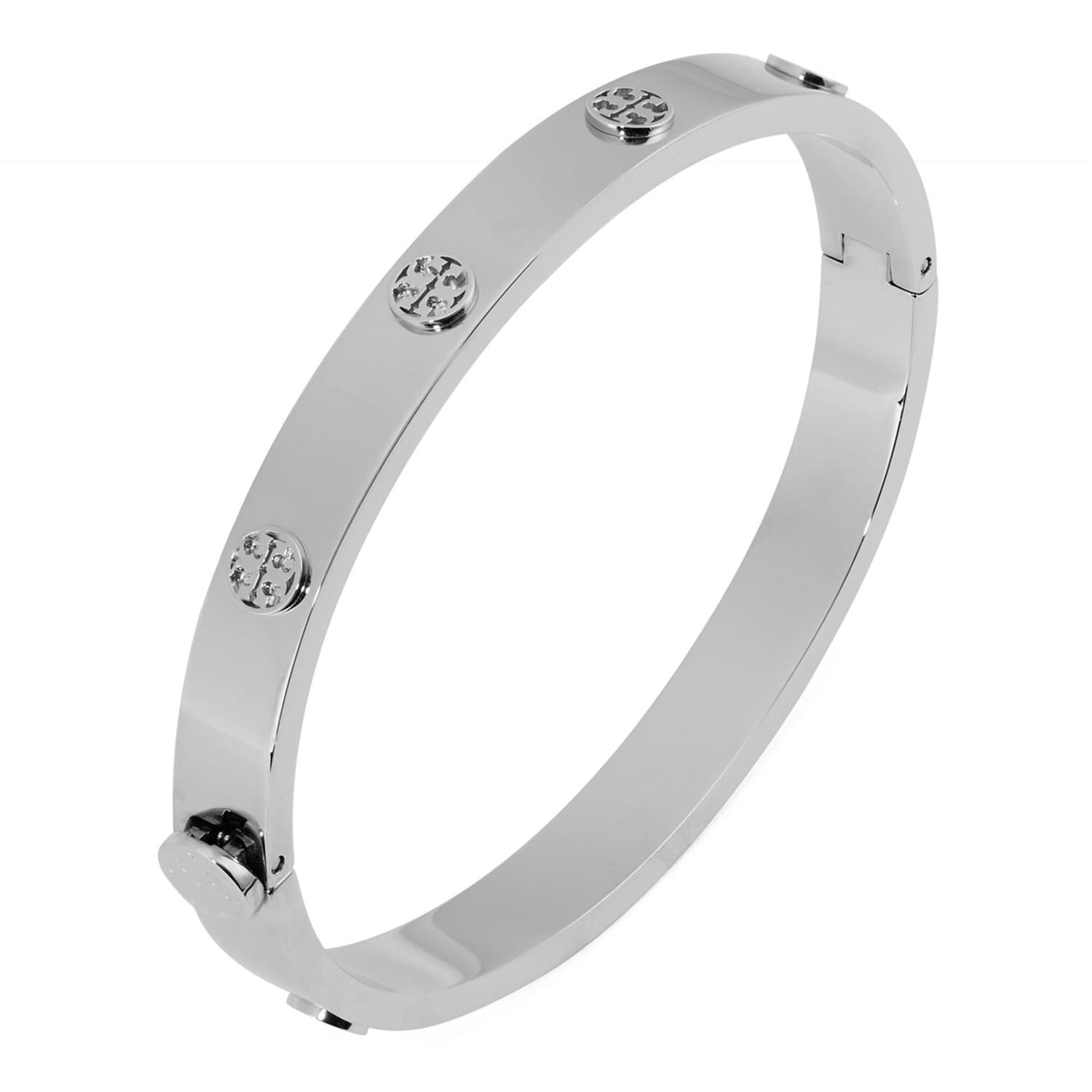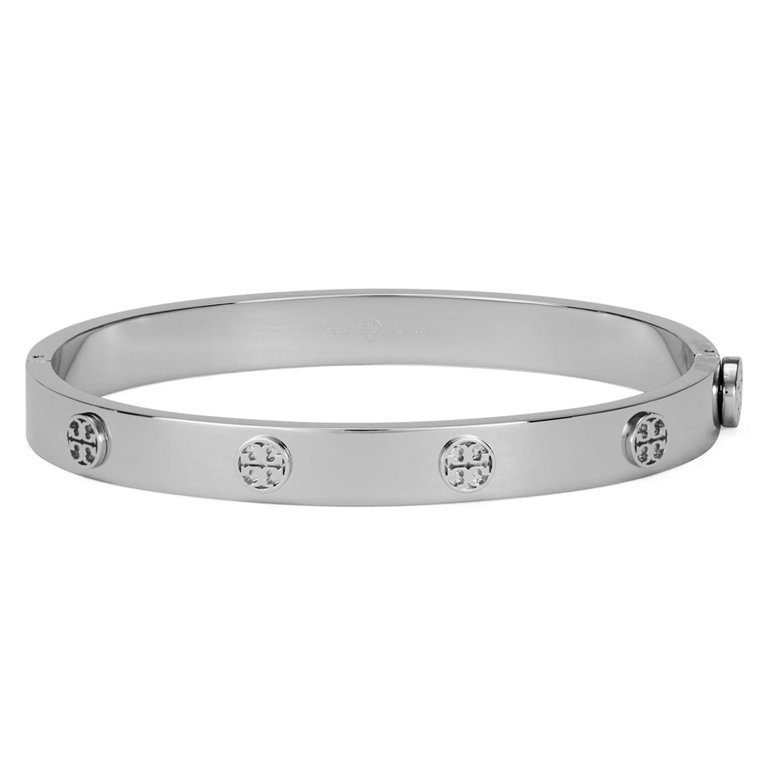 The Tory Burch Miller Studded Bracelet is a great addition to any jewelry collection, featuring a clasp fastening hinged design for an easy on and off, the iconic double t design to the outer along with a plated finish completes the look. Diameter: 6cm -