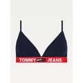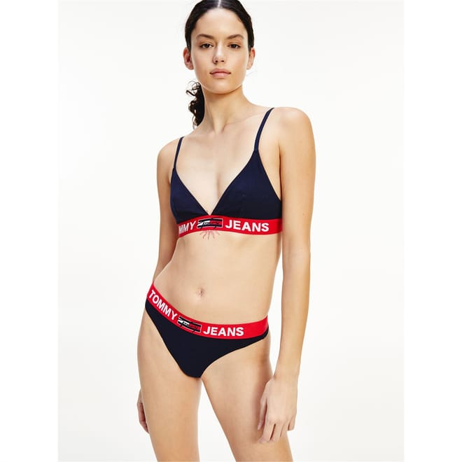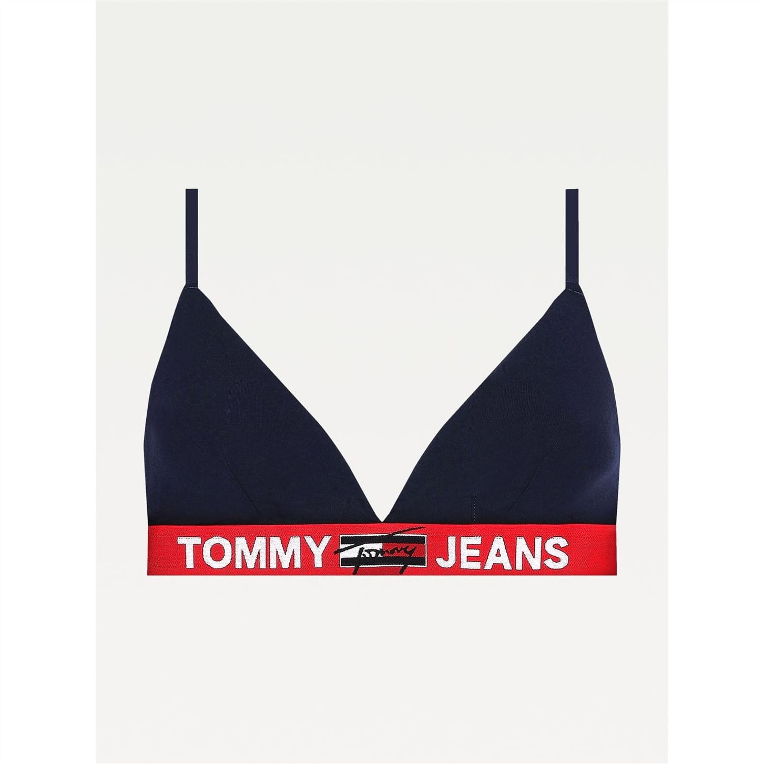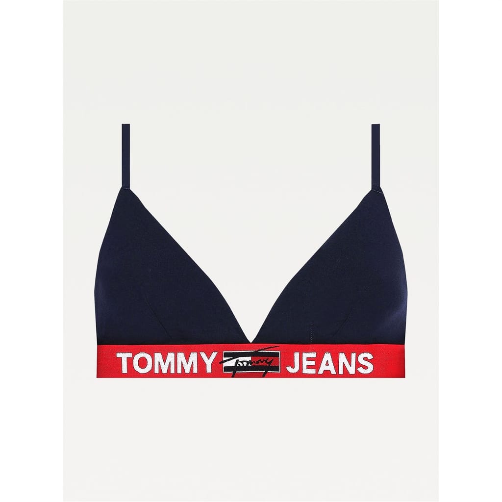 The Tommy Jeans Triangle Bralette is a great addition to your everyday accessories, crafted with a wide elasticated chest band along with adjustable shoulder straps for all day comfort. Unlined triangle cups along with the Tommy Jeans branding completes the look. -