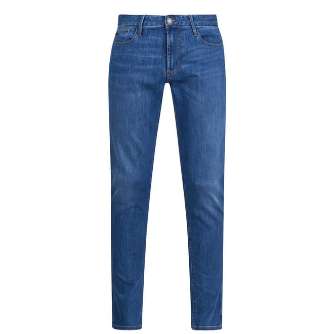 Premium denim meets Italian design in these J06 slim-fit jeans from Emporio Armani. The streamlined silhouette offers a modern cut that sits comfortably on the waist and maintains a sleek line through the leg. Signature branding appears on the leather back patch and iconic eagle motifs adorn the coin and back pockets, delivering understated luxury to this wardrobe essential.