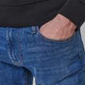 - Classic five-pocket construction provides practical storage while maintaining the jean's clean lines.