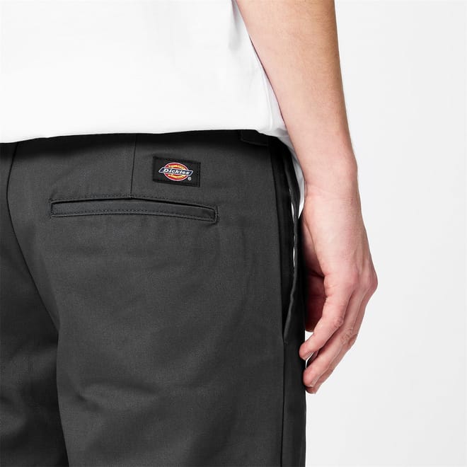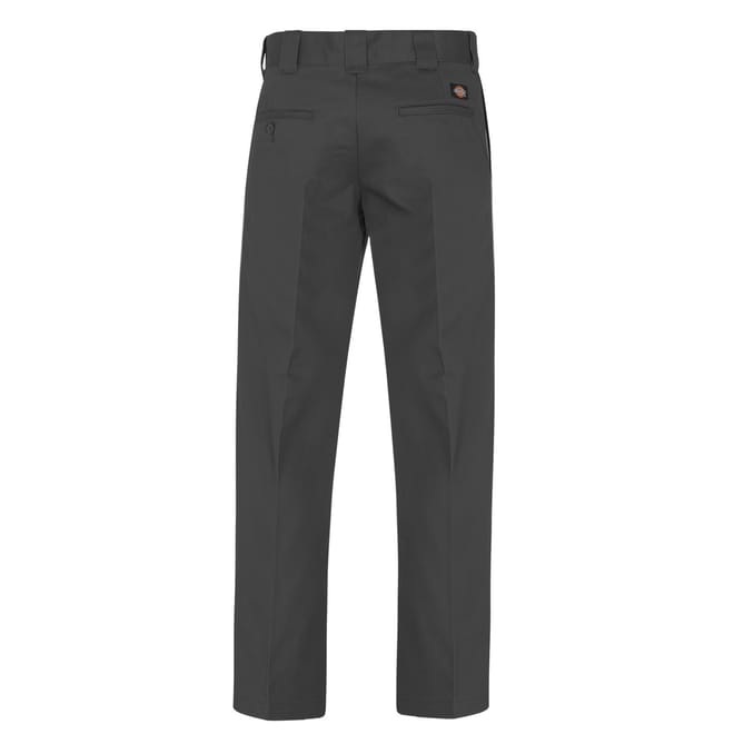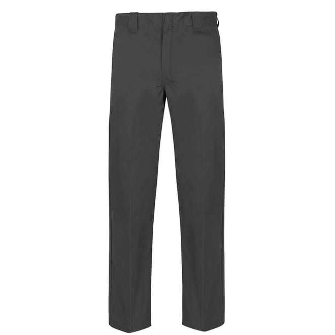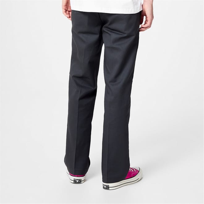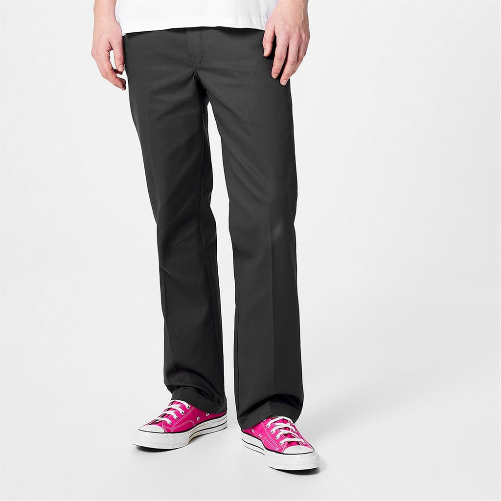 Update your smart-casual collection with the Dickies 873 Slim Trousers. Crafted from a soft Polyester and Cotton blend, these trousers style a slimmer fit and straight cut leg for a modern twist on a classic work pant. Cut with a low-rise, these trousers have a solid block colour all-over with a secure waist fastening, zipped fly, belt loops and four slip pockets. This wrinkle resistant design has a small Dickies branded logo to the rear, perfect to pair with loafers and a plain t-shirt for a casual look.