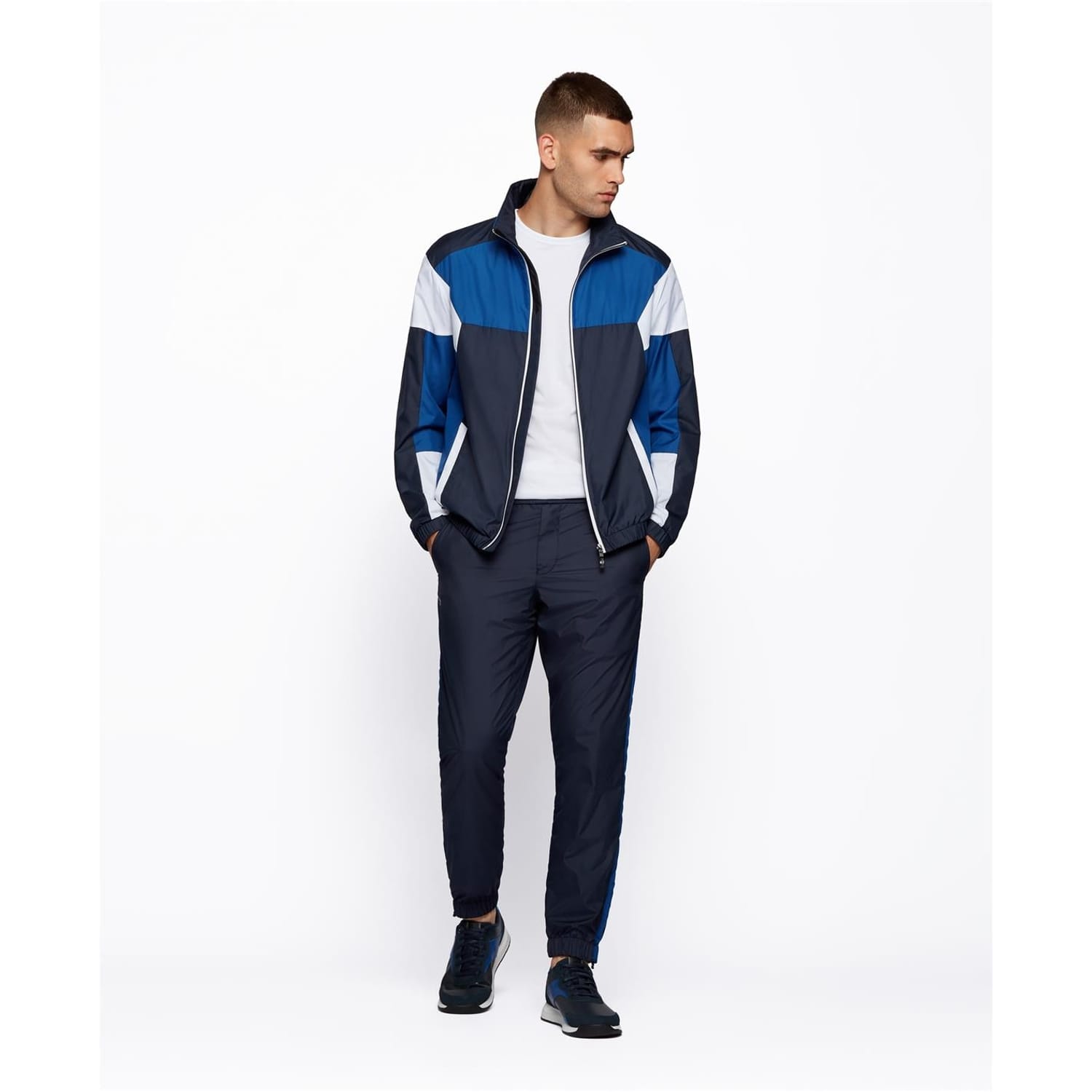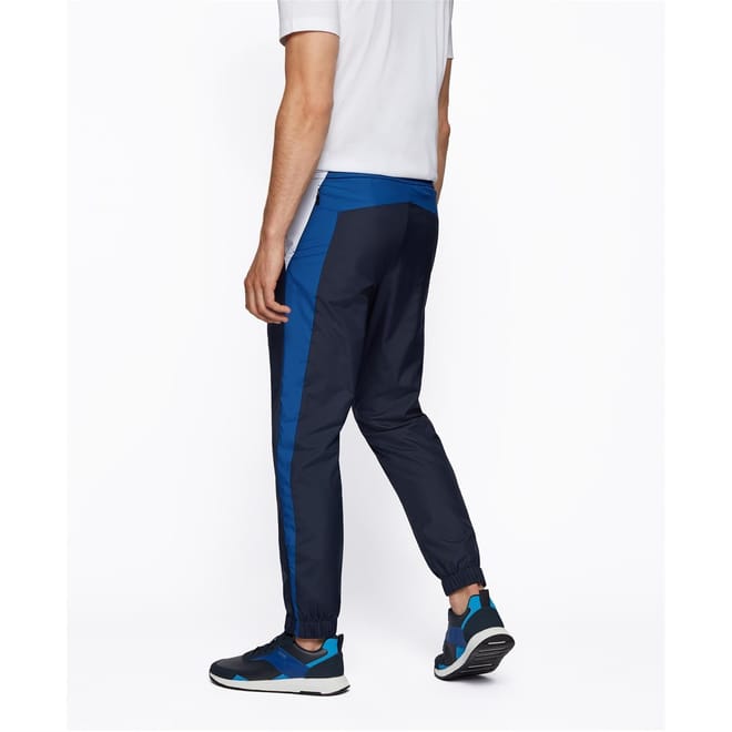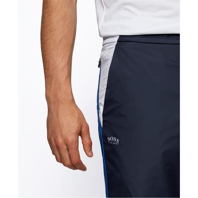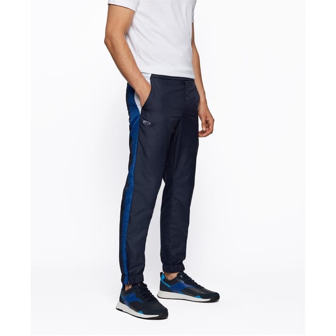 Update your collection with these BOSS Brem Trousers. Crafted with an elasticated waistband and drawstring fastening for a secure fit, they feature zipped cuffs for versatility and two hand pockets for storage. These trousers are designed with a signature logo and are complete with BOSS branding. -